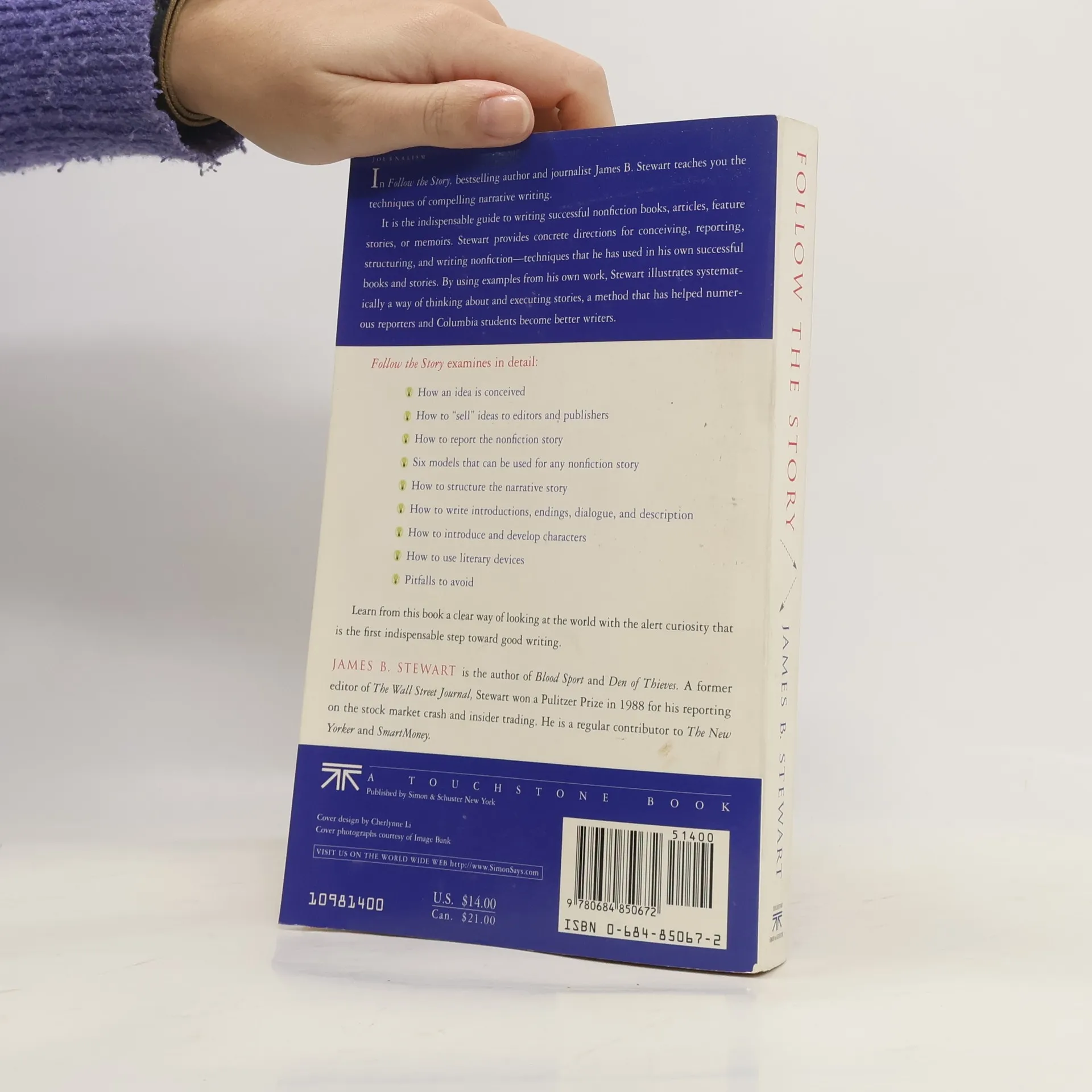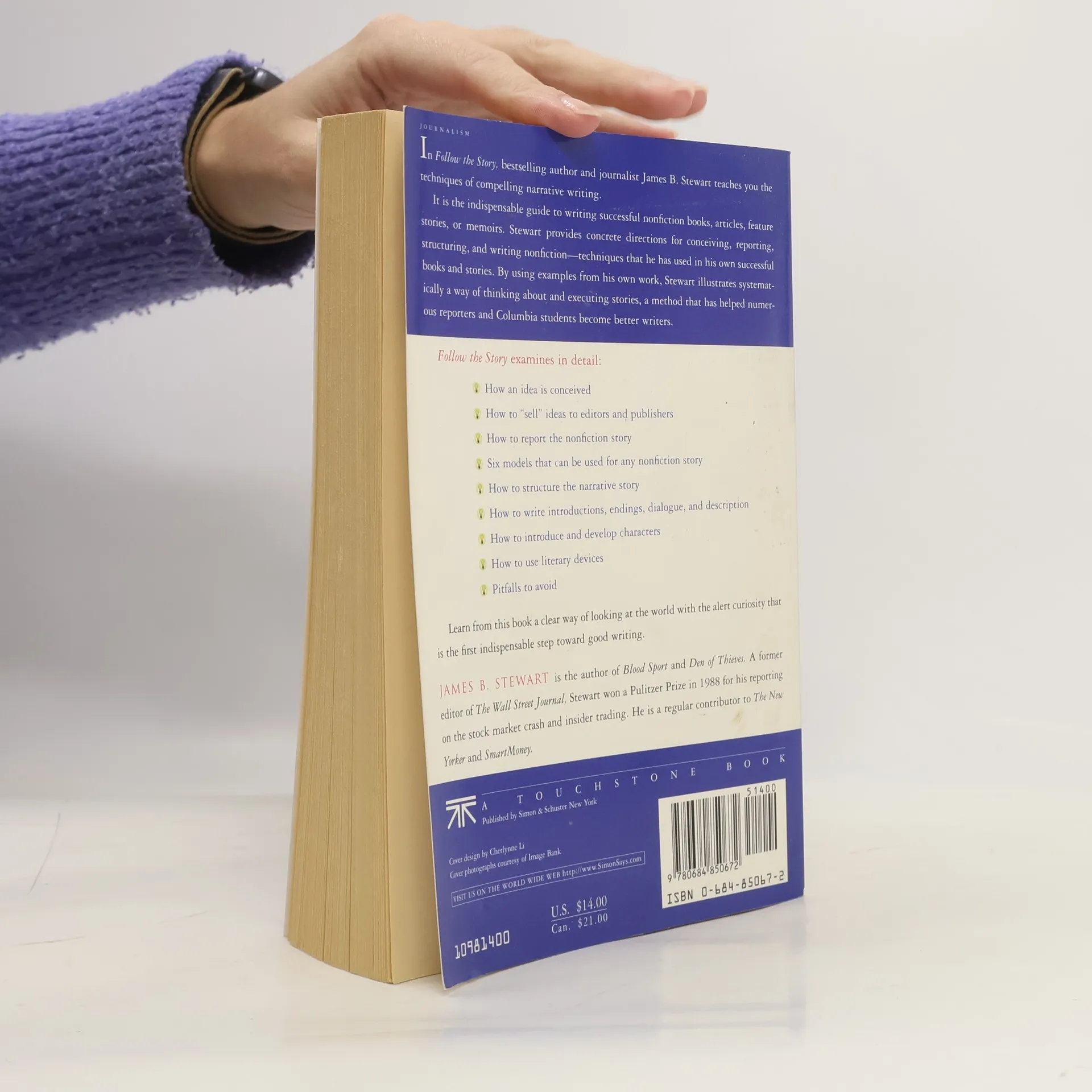 An indispensable guide to nonfiction writing from the Columbia Journalism School professor and Pulitzer Prize–winning journalist behind the bestsellers Blind Eye , Blood Sport , and Den of Thieves .In Follow the Story, bestselling author and journalist James B. Stewart teaches you the techniques of compelling narrative writing, from nonfiction books to articles, feature stories, or memoirs. Stewart provides concrete directions for conceiving, reporting, structuring, and writing nonfiction—techniques that he has used in his own successful books and stories. By using examples from his own work, Stewart illustrates systematically a way of thinking about and executing stories, a method that has helped numerous reporters and Columbia students become better writers.Follow the Story examines in - How an idea is conceived- How to “sell” ideas to editors and publishers- How to report the nonfiction story- Six models that can be used for any nonfiction story- How to structure the narrative story- How to write introductions, endings, dialogue, and description- How to introduce and develop characters- How to use literary devices- Pitfalls to avoidLearn a clear way of looking at the world with the alert curiosity that is the first indispensable step toward good writing.