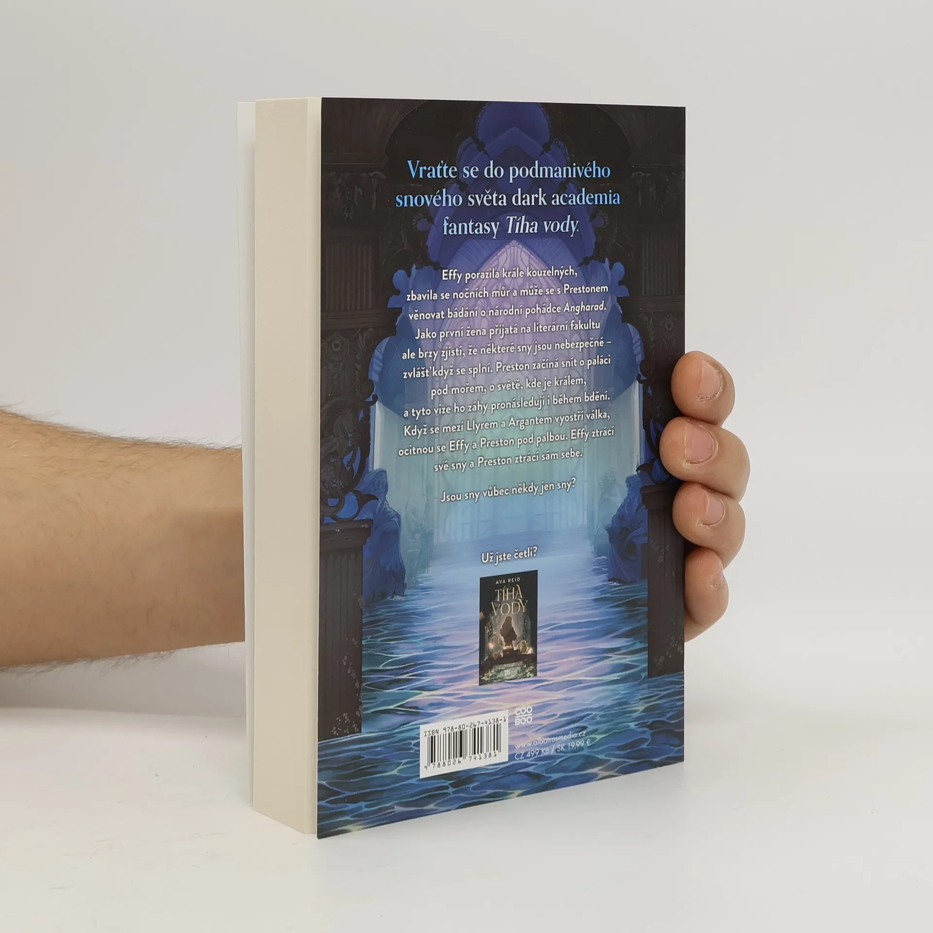 Vraťte se do podmanivého snového světa dark academia fantasy Tíha vody. Effy porazila krále kouzelných, zbavila se nočních můr a může se s Prestonem věnovat bádání o národní pohádce Angharad. Jako první žena přijatá na literární fakultu ale brzy zjistí, že některé sny jsou nebezpečné – zvlášť když se splní. Preston začíná snít o paláci pod mořem, o světě, kde je králem, a tyto vize ho záhy pronásledují i během bdění. Když se mezi Llyrem a Argantem vyostří válka, ocitnou se Effy a Preston pod palbou. Effy ztrácí své sny a Preston ztrácí sám sebe. Jsou sny vůbec někdy jen sny?
