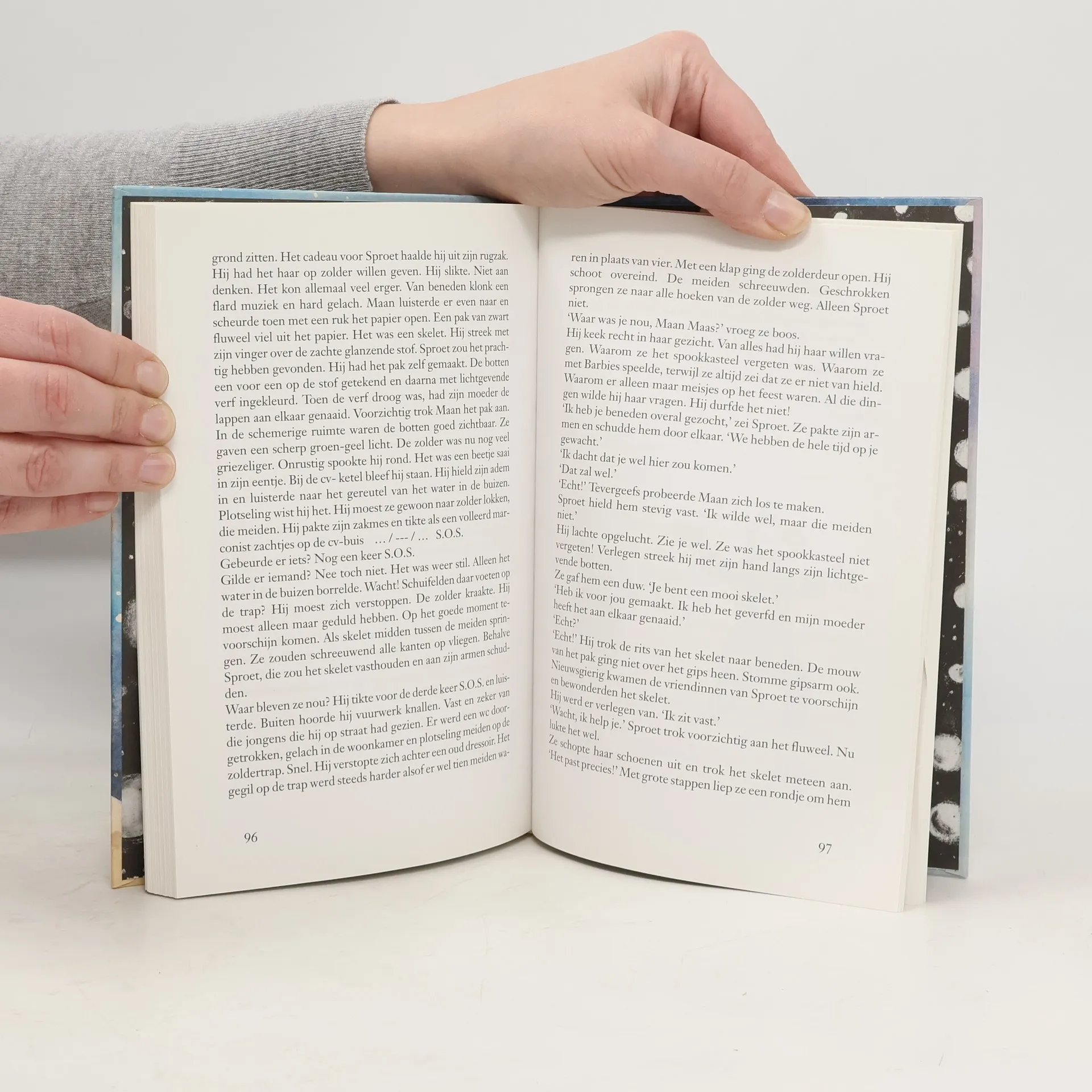 Emmanuel Maas, bijgenaamd Maan, kan niet wennen aan zijn nieuwe school; hij wordt gepest omdat hij geen vader heeft. Maar zijn hobby, het heelal, en oom Ge helpen hem door de moeilijke tijd. Vanaf ca. 9 jaar,