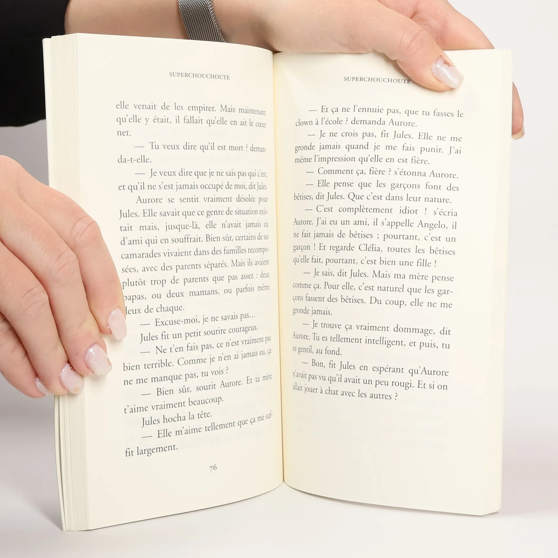 Aurore a toujours été la chouchoute de tout son entourage : sa famille, ses professeurs, ses camarades de classe... Mais pourquoi est-ce si important, pour Aurore, d''être la préférée de tous ? En plus, ce n''est pas facile d''être partout et toujours la petite fille parfaite : il faut se conformer aux désirs des autres, parfois au détriment de ce qu''on souhaite vraiment. Une vieille tante acariâtre et Jules, l''élève le plus turbulent de sa classe, se feront un plaisir d''aider Aurore à comprendre que, pour devenir soi-même, il faut parfois s''éloigner de son image de superchouchoute...Un très beau roman sur la construction de la personnalité chez un enfant en qui beaucoup de lectrices et de lecteurs se reconnaîtront.