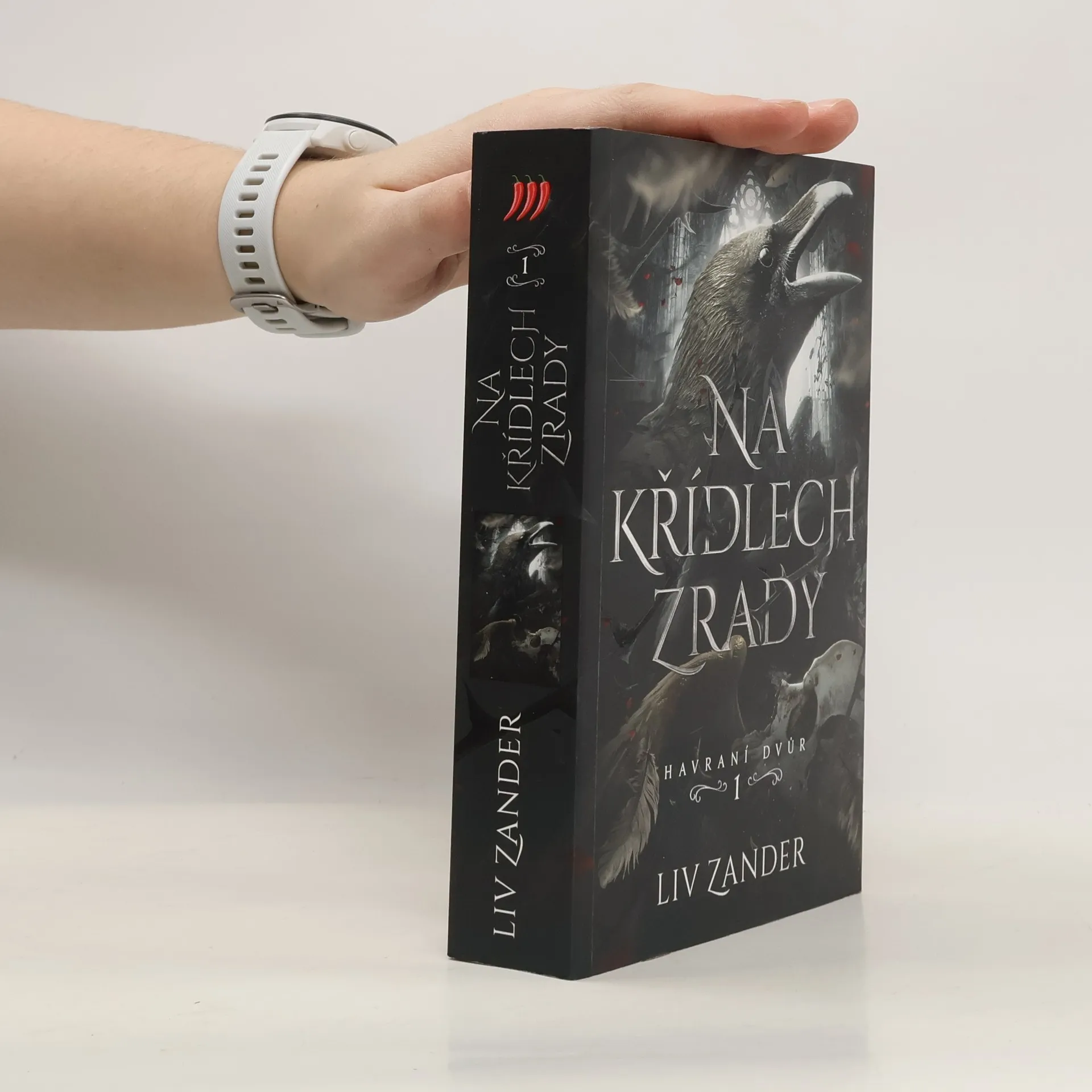 Na křídlech zrady, první díl z duologie Havraní dvůr, je fantasy příběh o dvou morálně zkažených havraních měničích a mladé ženě v pasti jejich stínů. Tento svět je plný násilí, posedlosti a antihrdinů. Co tato kniha neobsahuje, je kladný hrdina – protože padouši to umí lépe. A dva to umí lépe než jeden… Světový bestseller a totální hit Instagramu i Tik-Toku přichází! Román míchá temnou romantiku a bezohledné intriky tak neodolatelně, že nastavuje nový standard žánru dark fantasy romance. Originální svět, drsné, morálně pochybné postavy a šokující zvraty vás donutí číst až do poslední stránky. Čekáme ve stínech, plánujeme zradu a bojujeme za království… dokud ji neroztrháme drápy. Naši zajatkyni. Naši hračku. Je nevinná, křehká – a přesto její krev chutná provinile. Říká nám zvířata – hříšní, zlí, krutí. A má pravdu. Jeden jí nabídne útočiště a rozkoš, druhý ji touží roztříštit a v ostří střepů najít pomstu. Podvolí se temnotě, nebo si vybojuje svůj osud? Vítej na Havraním dvoře, bílá holubičko.