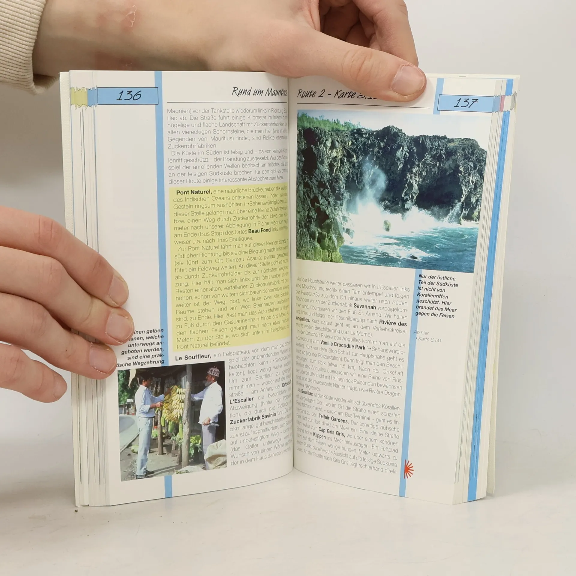 Geschichte, Land und Leute, Tier- und Pflanzenwelt, Unterwasserfauna, Sportmöglichkeiten, Exkursionen zu den Nachbarinseln, Ausflug zur französischen Insel Réunion; ausführliches Hotelverzeichnis mit Leistungsmerkmalen