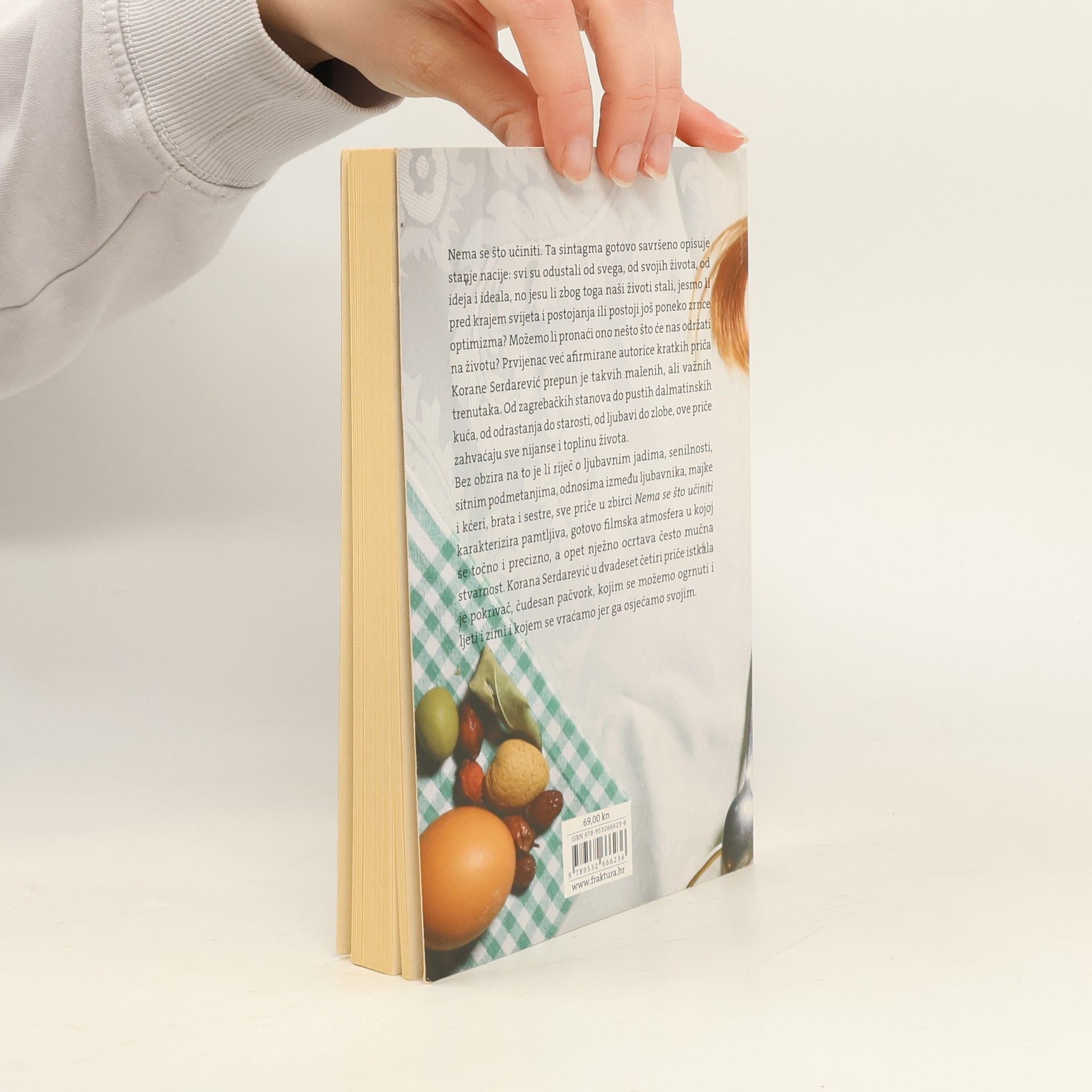 Nema se što učiniti. Ta sintagma gotovo savršeno opisuje stanje nacije: svi su odustali od svega, od svojih života, od ideja i ideala, no jesu li zbog toga naši životi stali, jesmo li pred krajem svijeta i postojanja ili postoji još poneko zrnce optimizma? Možemo li pronaći ono nešto što će nas održati na životu? Prvijenac već afirmirane autorice kratkih priča Korane Serdarević prepun je takvih malenih, ali važnih trenutaka. Od zagrebačkih stanova do pustih dalmatinskih kuća, od odrastanja do starosti, od ljubavi do zlobe, ove priče zahvaćaju sve nijanse i toplinu života. Bez obzira na to je li riječ o ljubavnim jadima, senilnosti, sitnim podmetanjima, odnosima između ljubavnika, majke i kćeri, brata i sestre, sve priče u zbirci Nema se što učiniti karakterizira pamtljiva, gotovo filmska atmosfera u kojoj se točno i precizno, a opet nježno ocrtava često mučna stvarnost. Korana Serdarević u dvadeset četiri priče istkala je pokrivač, čudesan pačvork, kojim se možemo ogrnuti i ljeti i zimi i kojem se vraćamo jer ga osjećamo svojim.
