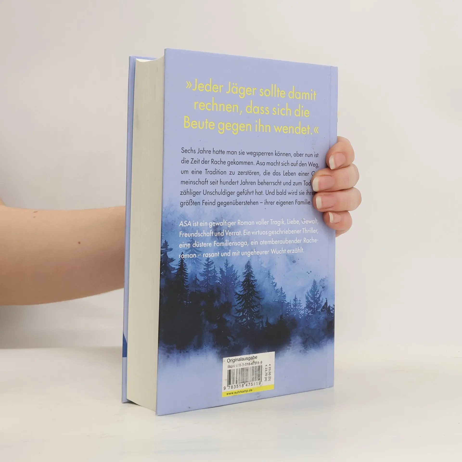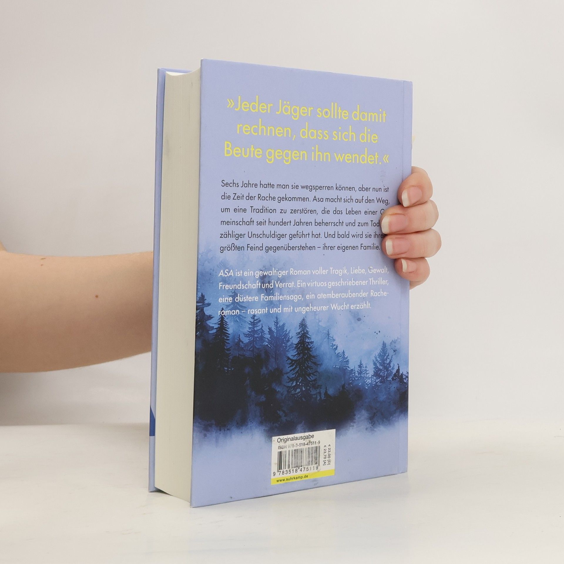 Sechs Jahre konnten sie sie wegsperren und bei dem Gedanken an sie beruhigt aufseufzen. Sechs Jahre konnten sie des Nachts ruhiger schlafen und mussten des Tags nicht nervös über die Schulter blicken, ob sie ihnen nicht doch auf den Fersen ist. Aber diese Zeit ist jetzt vorbei, weil sie wieder da Asa, die Legende, Asa, die Unbezwingbare, die große Jägerin, deren Feinde sie ehrfurchtsvoll »mir« nennen, Frieden. Und sie Ihr Frieden wird ein endgültiger sein, Asa hatte sechs Jahre Zeit für ihren Racheplan. Denn Rache wird sie nehmen. An all jenen, die die unbarmherzige und grausame Tradition, die »Prüfung«, weitergeführt und ihr damit das Liebste genommen haben. Bei ihrem Kampf findet Asa loyale Verbündete, erfährt niederträchtigen Verrat, trifft auf mächtige Gegner und stellt sich schließlich ihrem größten Feind – ihrer eigenen Familie.