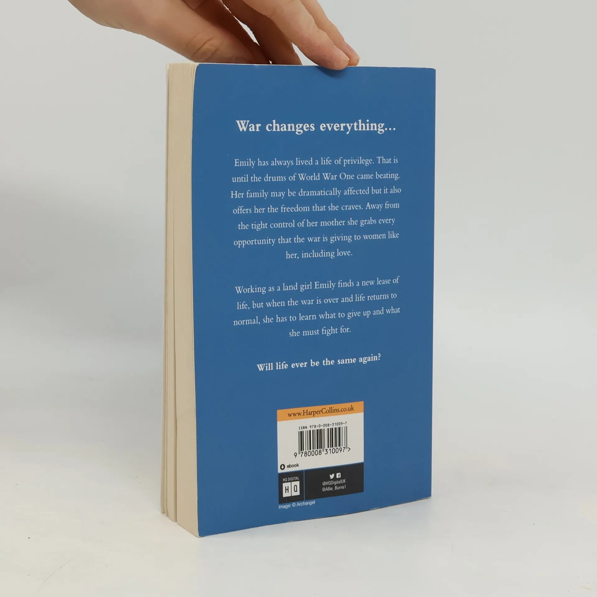 War changes everything… Emily has always lived a life of privilege. That is until the drums of World War One came beating. Her family may be dramatically affected but it also offers her the freedom that she craves. Away from the tight control of her mother she grabs every opportunity that the war is giving to women like her, including love.Working as a land girl Emily finds a new lease of life but when the war is over, and life returns to normal, she has to learn what to give up and what she must fight for.Will life ever be the same again?What readers are saying about THE LAND GIRL:‘A fabulously written historical novel set during the First World War that is absolutely impossible to put down, The Land Girl is another exceptionally told tale by Allie Burns.’‘5 Words: Family, responsibility, love, grief, belief.’‘I can’t recommend this book enough.’‘The Land Girl is an absorbing, compelling and evocative historical novel I simply couldn’t bear to put down.’‘Elegantly written, wonderfully poignant and wholly mesmerizing, The Land Girl is an atmospheric and unforgettable tale of love, war, hope, second chances and healing that will hold readers in thrall from beginning to end.’‘This book was honestly such a delight to read’‘A great story very compelling … definitely recommend’