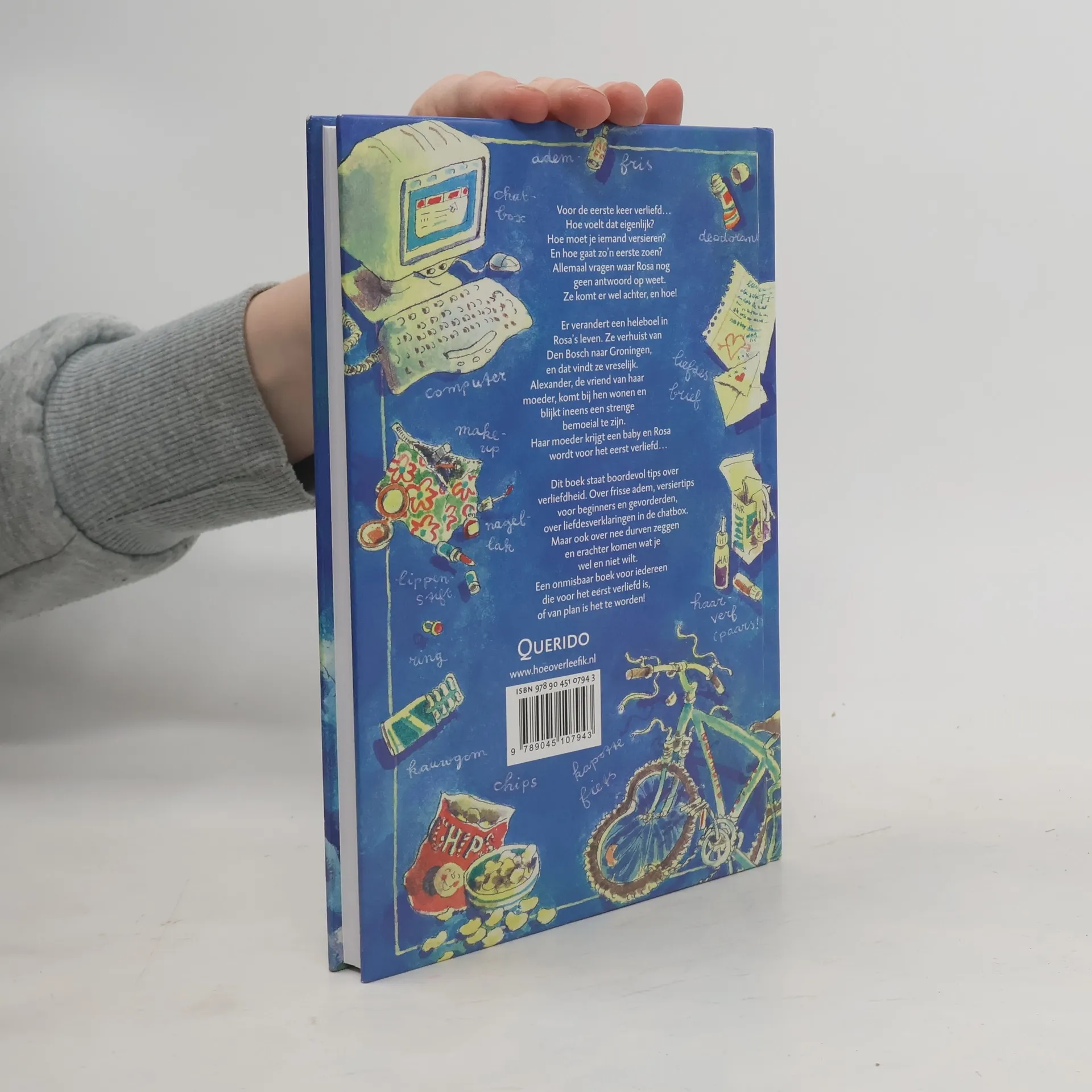 Voor de eerste keer verliefd… Hoe voelt dat eigenlijk? Hoe moet je iemand versieren? En hoe gaat zo’n eerste zoen? Er verandert een heleboel in Rosa’s leven. Ze verhuist van Den Bosch naar Groningen, en dat vindt ze vreselijk. Alexander, de vriend van haar moeder, komt bij hen wonen en blijkt ineens een strenge bemoeial te zijn. Haar moeder krijgt een baby en Rosa wordt voor het eerst verliefd…Dit boek staat boordevol tips over verliefdheid. Over frisse adem, versiertips voor beginners en gevorderden, over liefdesverklaringen in de chatbox. Maar ook over nee durven zeggen en erachter komen wat je wel en niet wilt. Een onmisbaar boek voor iedereen die voor het eerst verliefd is, of van plan is het te worden!