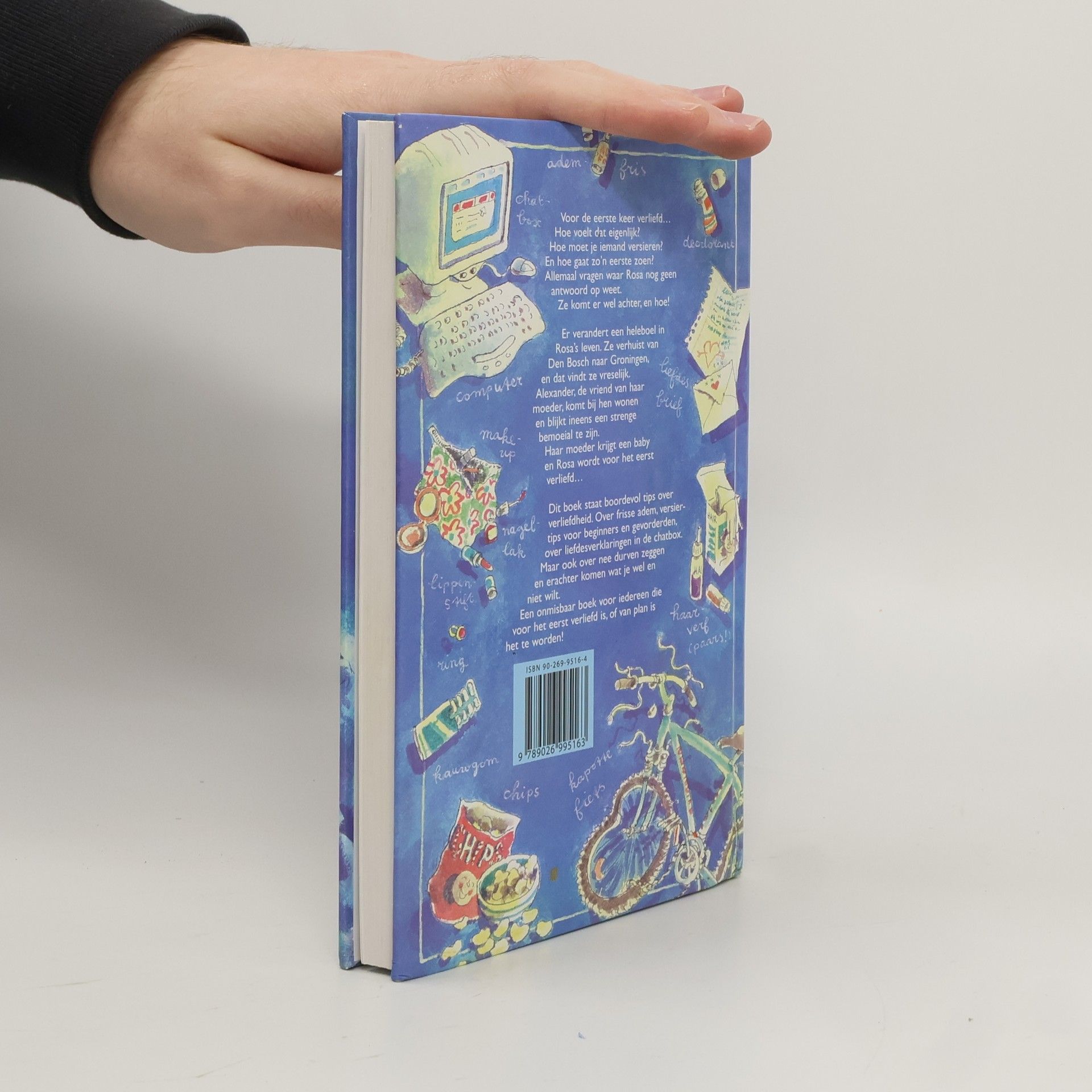 Voor de eerste keer verliefd… Hoe voelt dat eigenlijk? Hoe moet je iemand versieren? En hoe gaat zo’n eerste zoen? Er verandert een heleboel in Rosa’s leven. Ze verhuist van Den Bosch naar Groningen, en dat vindt ze vreselijk. Alexander, de vriend van haar moeder, komt bij hen wonen en blijkt ineens een strenge bemoeial te zijn. Haar moeder krijgt een baby en Rosa wordt voor het eerst verliefd…Dit boek staat boordevol tips over verliefdheid. Over frisse adem, versiertips voor beginners en gevorderden, over liefdesverklaringen in de chatbox. Maar ook over nee durven zeggen en erachter komen wat je wel en niet wilt. Een onmisbaar boek voor iedereen die voor het eerst verliefd is, of van plan is het te worden!