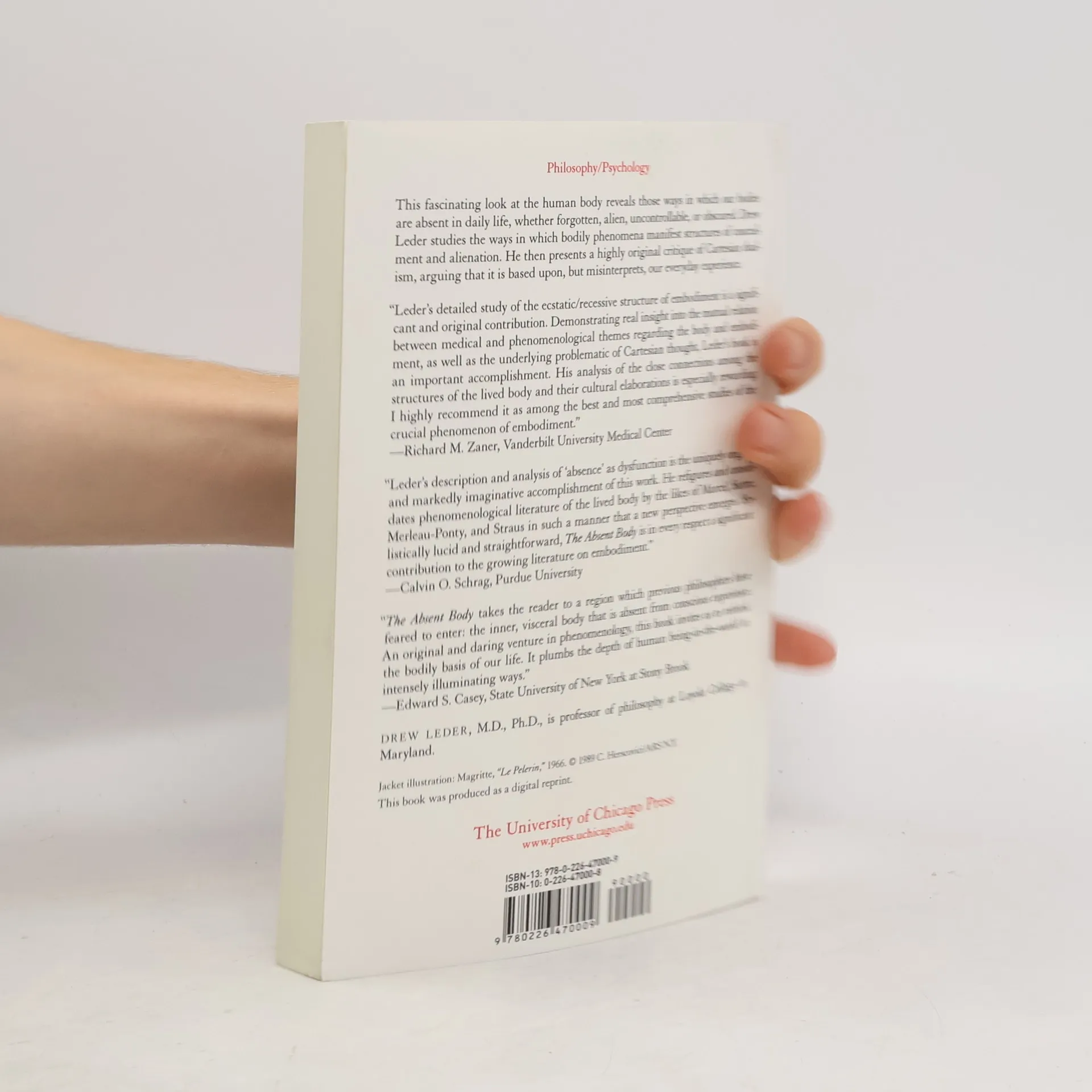 The body plays a central role in shaping our experience of the world. Why, then, are we so frequently oblivious to our own bodies? We gaze at the world, but rarely see our own eyes. We may be unable to explain how we perform the simplest of acts. We are even less aware of our internal organs and the physiological processes that keep us alive. In this fascinating work, Drew Leder examines all the ways in which the body is absent —forgotten, alien, uncontrollable, obscured.In part 1, Leder explores a wide range of bodily functions with an eye to structures of concealment and alienation. He discusses not only perception and movement, skills and tools, but a variety of "bodies" that philosophers tend to the inner body with its anonymous rhythms; the sleeping body into which we nightly lapse; the prenatal body from which we first came to be. Leder thereby seeks to challenge "primacy of perception." In part 2, Leder shows how this phenomenology allows us to rethink traditional concepts of mind and body. Leder argues that Cartesian dualism exhibits an abiding power because it draws upon life-world experiences. Descartes' corpus is filled with disruptive bodies which can only be subdued by exercising "disembodied" reason. Leder explores the origins of this notion of reason as disembodied, focusing upon the hidden corporeality of language and thought. In a final chapter, Leder then proposes a new ethic of embodiment to carry us beyond Cartesianism.This original, important, and accessible work uses examples from the author's medical training throughout. It will interest all those concerned with phenomenology, the philosophy of mind, or the Cartesian tradition; those working in the health care professions; and all those fascinated by the human body.