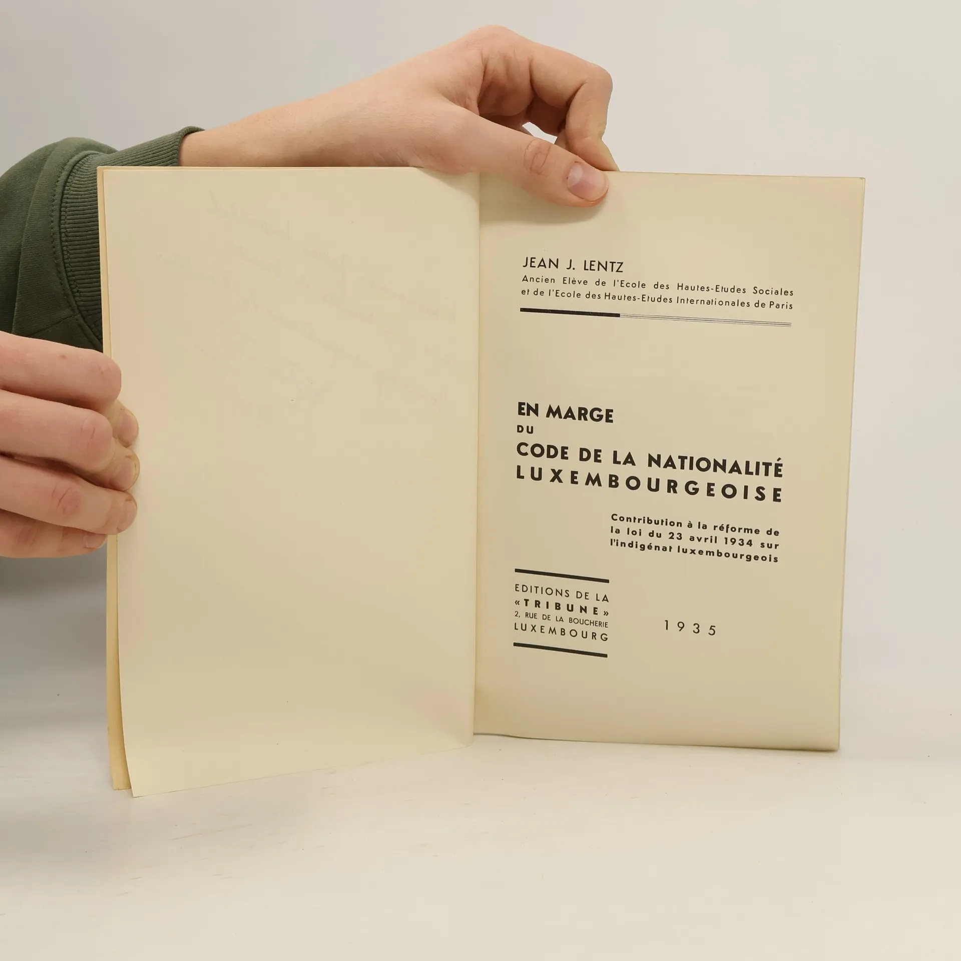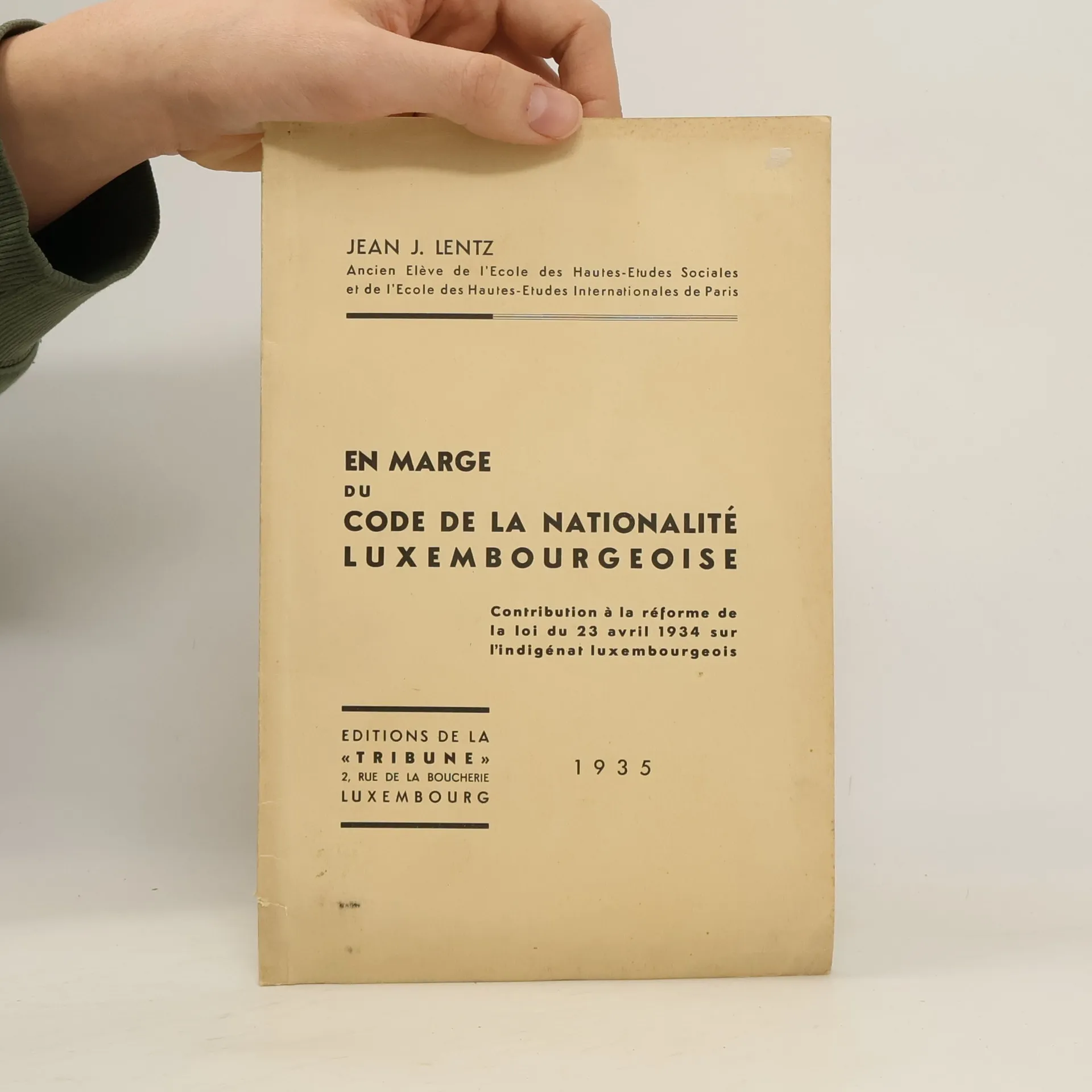 En marge du code de la nationalité luxembourgeoise, Jean J. Lentz