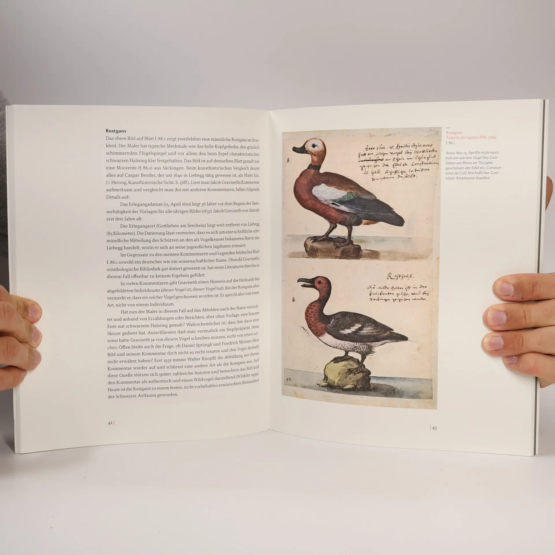 Der ornithologisch interessierte Schlossherr zu Liebegg im bernischen Aargau, Jakob Graviseth, liess um die Mitte des 17. Jahrhunderts eine Sammlung von Vogelbildern anlegen. Mitglieder der Familie und eine Reihe von auswärtigen Künstlern schufen im Laufe der Jahre fast 200 Vogelbilder. In Farbe porträtiert wurden die damals heimischen Vogelarten von Yverdon bis an den Bodensee. Im 18. Jahrhundert vereinigte man die losen Bilder zu einem Album. Das Vogelbuch der Familie Graviseth befindet sich heute in der Burgerbibliothek Bern. Das reich illustrierte Werk ist nicht nur für die Geschichte der wild lebenden Vögel und die bernische Jagd- und Marktgeschichte, sondern wegen seiner Zusammenhänge mit der Stillebenmalerei des in Bern tätigen Strassburger Malers Albrecht Kauw auch für die Kunstgeschichte von Interesse.