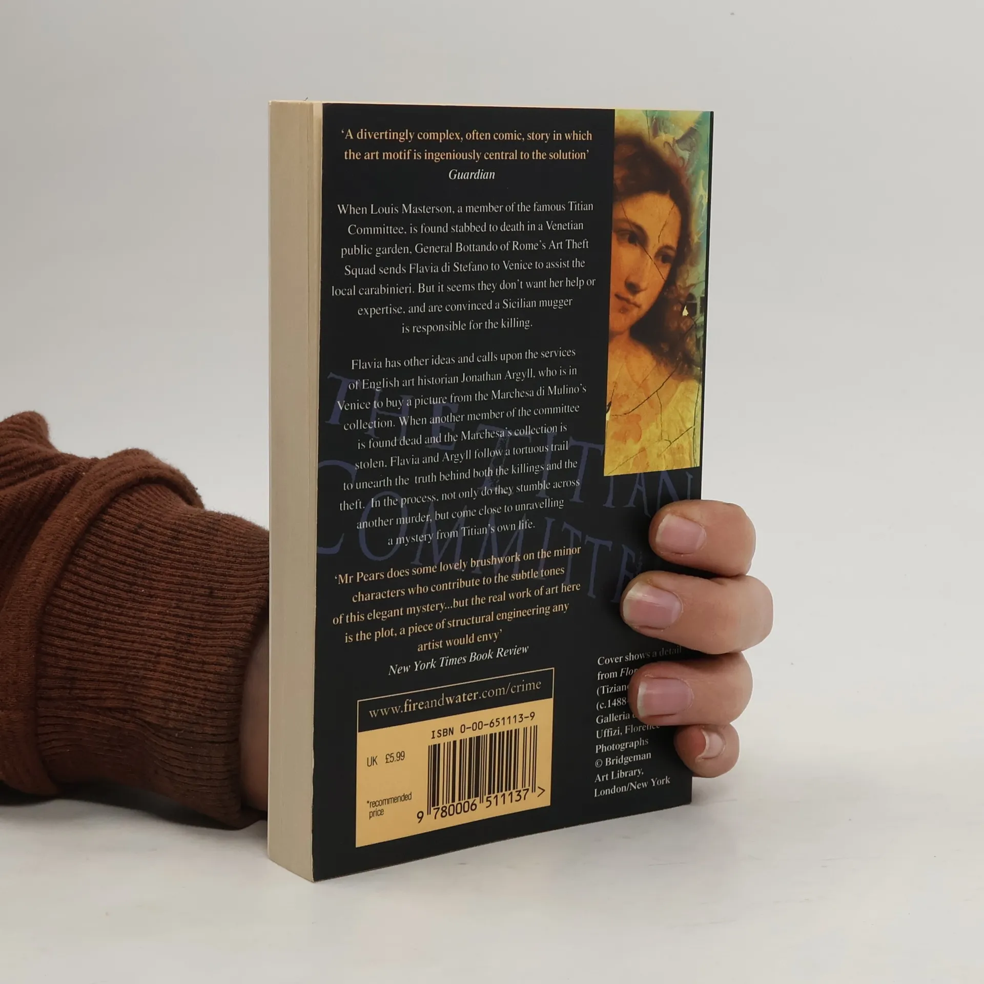 When Louis Masterson, a member of the famous Titian Committee, is found stabbed to death in a Venetian public garden, General Bottando of Rome’s Art Theft Squad sends Flavia di Stefano to Venice to assist the local carabinieri. But it seems they don’t want her help or expertise, and are convinced a Sicilian mugger is responsible for the killing. Flavia has other ideas and calls upon the services of English art historian Jonathan Argyll, who is in Venice to buy a picture from the Marchesa di Mulino’s collection. When another member of the committee is found dead and the Marchesa’s collection is stolen, Flavia and Argyll follow a tortuous trail to unearth the truth behind both the killings and the theft. In the process, not only do they stumble across another murder, but come close to unravelling a mystery from Titian’s own life.
