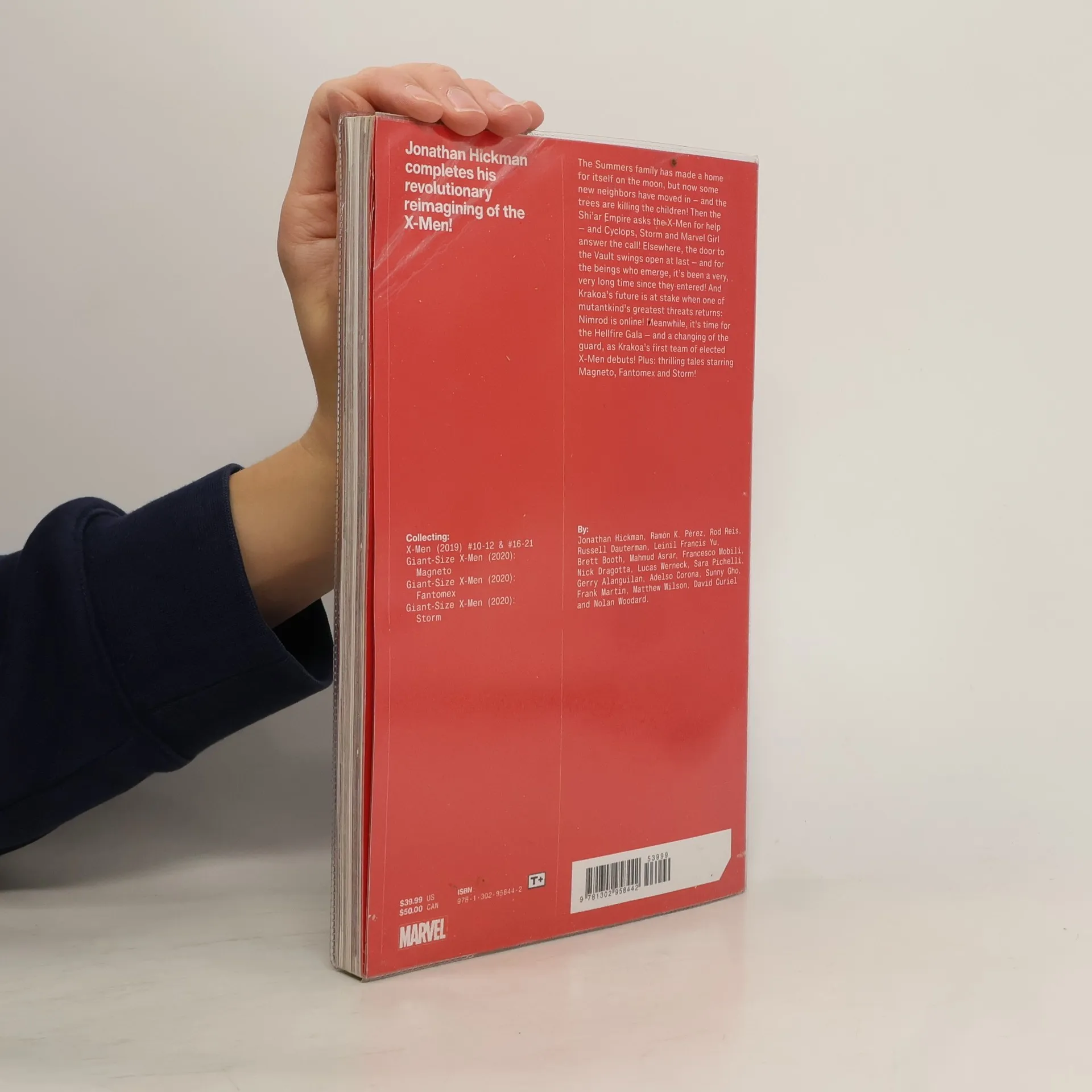After transforming the landscape for mutantkind in HOUSE OF X/POWERS OF X, Jonathan Hickman continues to reinvent the X-MEN! The Summers family has made a home for themselves on the moon, but now some new neighbors have moved in -- and the trees are killing the children! Then, the Shi'ar Empire asks the X-Men for help, and Cyclops, Storm and Marvel Girl answer the call! Elsewhere, the door to the Vault swings open at last -- and for the beings who emerge, it's been a very, very long time since they entered! And Krakoa's future is at stake when one of mutantkind's greatest threats returns: Nimrod is online! Meanwhile, it's time for the Hellfire Gala -- and a changing of the guard, as Krakoa's first team of elected X-Men debuts! Plus: thrilling tales starring Magneto, Fantomex and Storm! COLLECTING: X-Men (2019) 10-12, 16-21, Giant-Size X-Men: Magneto (2020) 1, Giant-Size X-Men: Fantomex (2020) 1, Giant-Size X-Men: Storm (2020) 1
