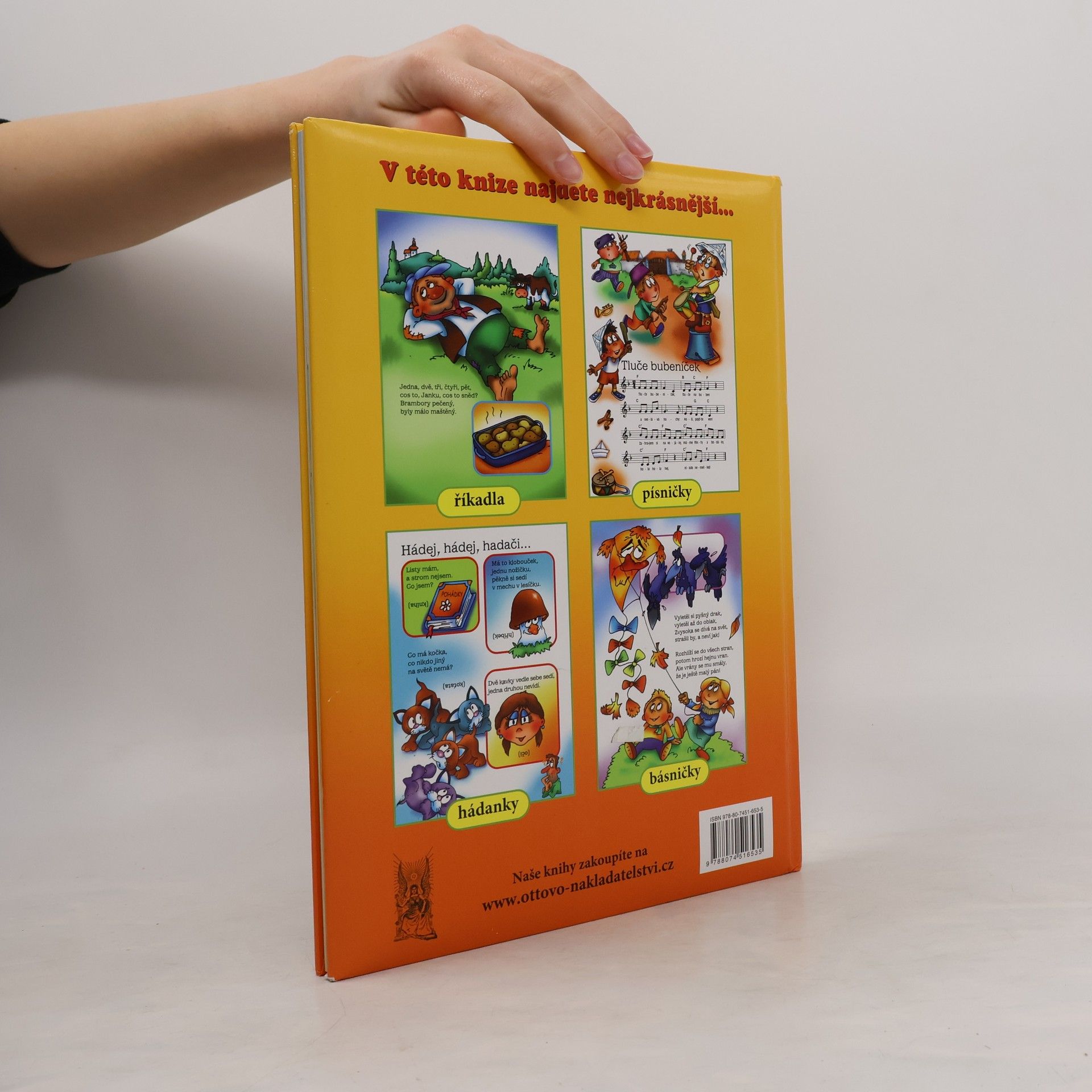 Výběr lidových říkadel, známých písniček a hádánek, které zaujmou jak malé čtenáře, tak i jejich maminky a babičky.