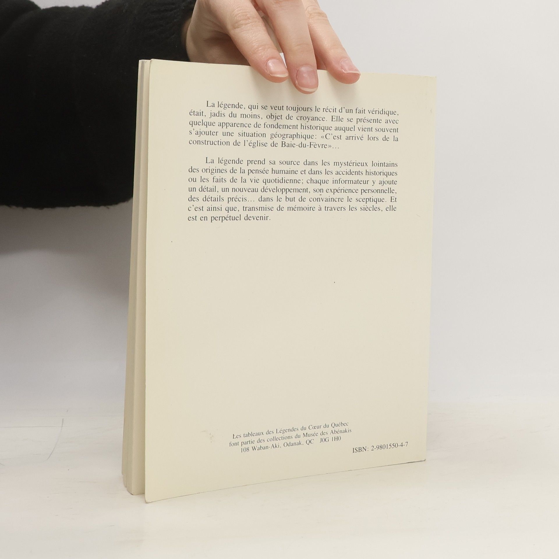 Vingt-cinq brèves légendes dont le cadre se situe dans les comtés de Nicolet, Drummond, Lotbinière, Mégantic ou Arthabaska, illustrées d'huiles sur toile de facture naïve. Référence bibliographique pour chacune des légendes (p. 58-59).