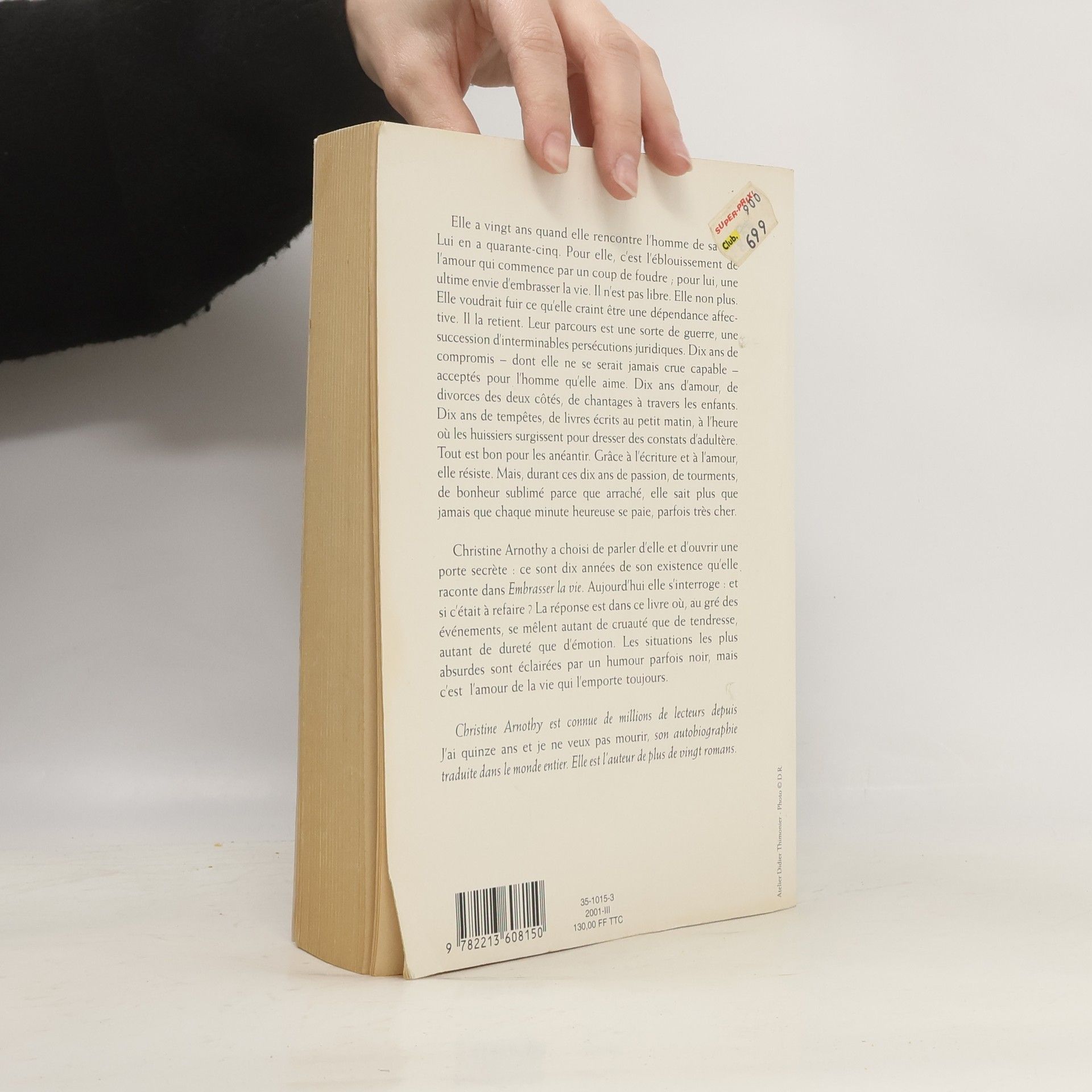 Elle a vingt ans quand elle rencontre l'homme de sa vie. Lui en a quarante-cinq. Pour elle, c'est l'éblouissement de l'amour qui commence par un coup de foudre ; pour lui, une ultime envie d'embrasser la vie. Il n'est pas libre. Elle non plus. Elle voudrait fuir ce qu'elle craint être une dépendance affective. Il la retient. Leur parcours est une sorte de guerre, une succession d'interminables persécutions juridiques. Dix ans de compromis - dont elle ne se serait jamais crue capable acceptés pour l'homme qu'elle aime. Dix ans d'amour, de divorces des deux côtés, de chantages à travers les enfants. Dix ans de tempêtes, de livres écrits au petit matin, à l'heure où les huissiers surgissent pour dresser des constats d'adultère. Tout est bon pour les anéantir. Grâce à l'écriture et à l'amour, elle résiste. Mais, durant ces dix ans de passion, de tourments, de bonheur sublimé parce que arraché, elle sait plus que jamais que chaque minute heureuse se paie, parfois très cher. Christine Arnothy a choisi de parler d'elle et d'ouvrir une porte secrète : ce sont dix années de son existence qu'elle raconte dans Embrasser la vie. Aujourd'hui elle s'interroge : et si c'était à refaire ? La réponse est dans ce livre où, au gré des événements, se mêlent autant de cruauté que de tendresse, autant de dureté que d'émotion. Les situations les plus absurdes sont éclairées par un humour parfois noir, mais c'est l'amour de la vie qui l'emporte toujours.