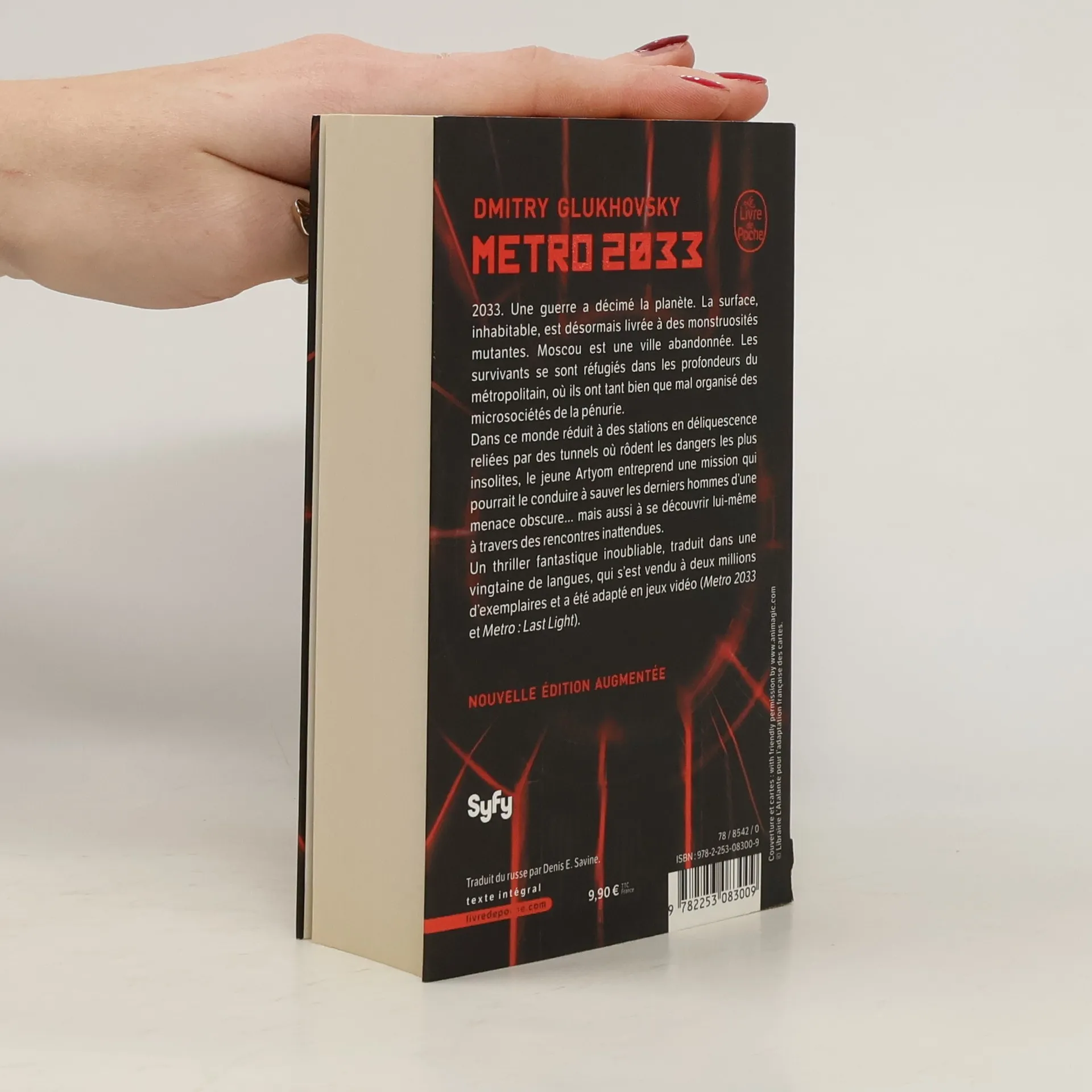 2033. Une guerre a décimé la planète. La surface, inhabitable, est désormais livrée à des monstruosités mutantes. Moscou est une ville abandonnée. Les survivants se sont réfugiés dans les profondeurs du métropolitain, où ils ont tant bien que mal organisé des microsociétés de la pénurie. Dans ce monde réduit à des stations en déliquescence reliées par des tunnels où rôdent les dangers les plus insolites, le jeune Artyom entreprend une mission qui pourrait le conduire à sauver les derniers hommes d'une menace obscure... mais aussi à se découvrir lui-même à travers des rencontres inattendues. Un thriller fantastique inoubliable, traduit dans une vingtaine de langues, qui s'est vendu à 1,5 million d'exemplaires et a été adapté en jeux vidéo (Metro 2033 et Metro : Last Light). « Tout simplement excellent ! » L’Écran fantastique. « Un roman de SF post-apocalyptique efficace et intelligent. » Bifrost. (Source : Lgf - Le livre de poche)