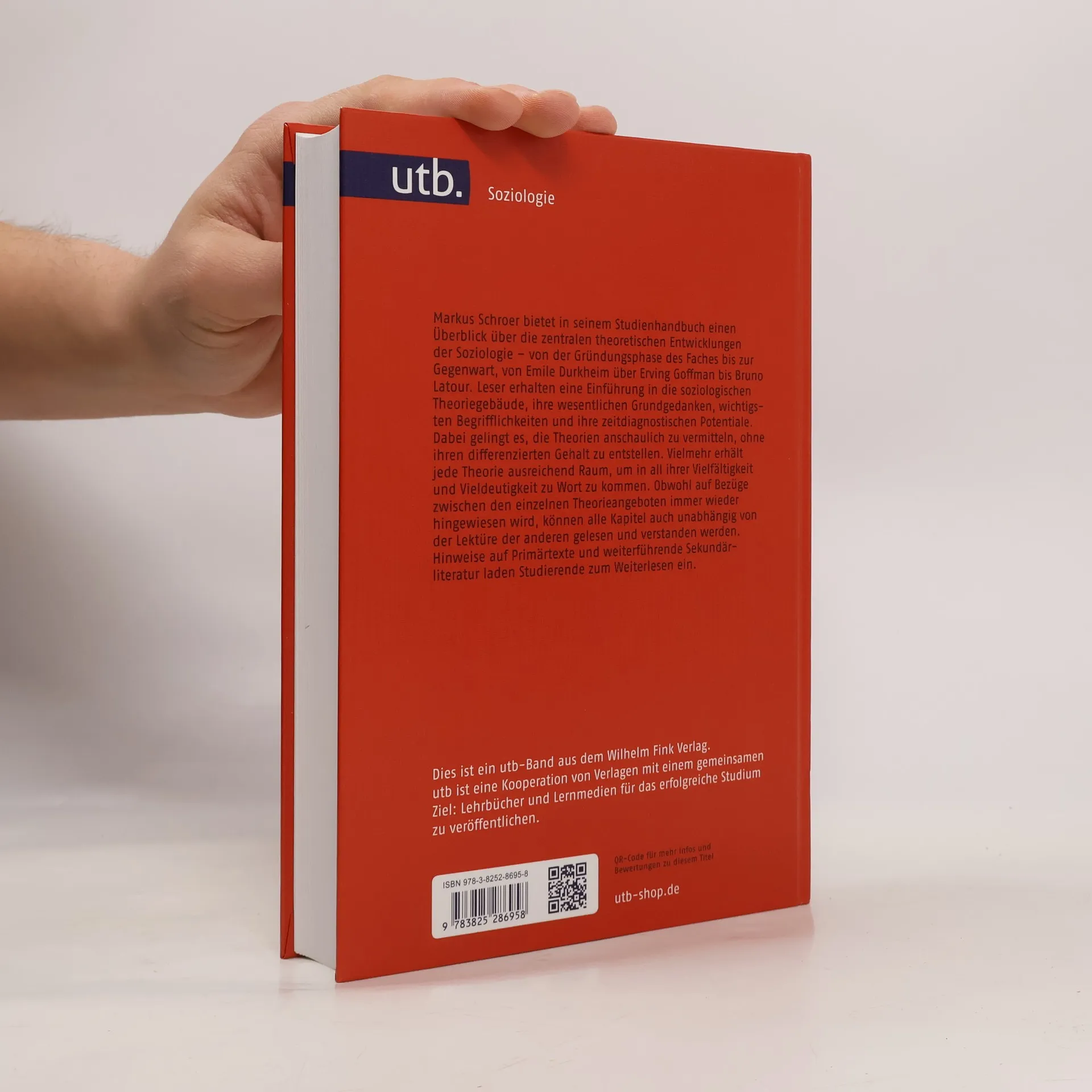 Markus Schroer bietet einen Überblick über die theoretischen Entwicklungen der Soziologie - von der Gründungsphase bis zur Gegenwart, von Emile Durkheim über Erving Goffman bis Bruno Latour. Dabei gelingt es ihm, die Theorien anschaulich zu vermitteln, ohne ihren differenzierten Gehalt zu entstellen. Alle Kapitel können auch einzeln gelesen werden. Hinweise auf Primärtexte und weiterführende Literatur laden zum Weiterlesen ein.