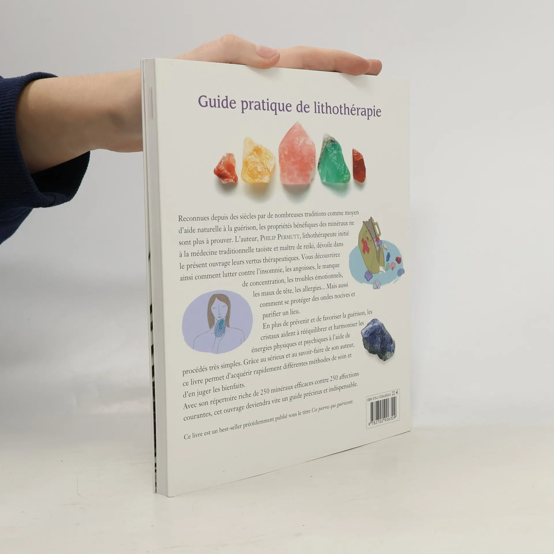 Reconnues depuis des siècles par de nombreuses traditions comme moyen de guérison naturelle, les propriétés bénéfiques des minéraux ne sont plus à prouver. L'auteur, PIILIP PERMUTT, initié à la médecine traditionnelle taoïste et maître de reiki, dévoile dans le présent ouvrage leurs vertus thérapeutiques. Vous découvrirez ainsi comment lutter contre l'insomnie, les angoisses, le manque de concentration, les troubles émotionnels, les maux de tête, les allergies... Mais aussi comment se protéger des ondes nocives et purifier un lieu. En plus de prévenir et guérir, les cristaux aident à rééquilibrer et harmoniser les énergies physiques et psychiques à l'aide de procédés très simples. Grâce au sérieux et au savoir-faire de son auteur, ce livre permet d'acquérir rapidement différentes méthodes de soin et d'en juger les bienfaits. Avec son répertoire riche de 250 minéraux efficaces contre 250 affections courantes, cet ouvrage deviendra vite un guide précieux et indispensable.