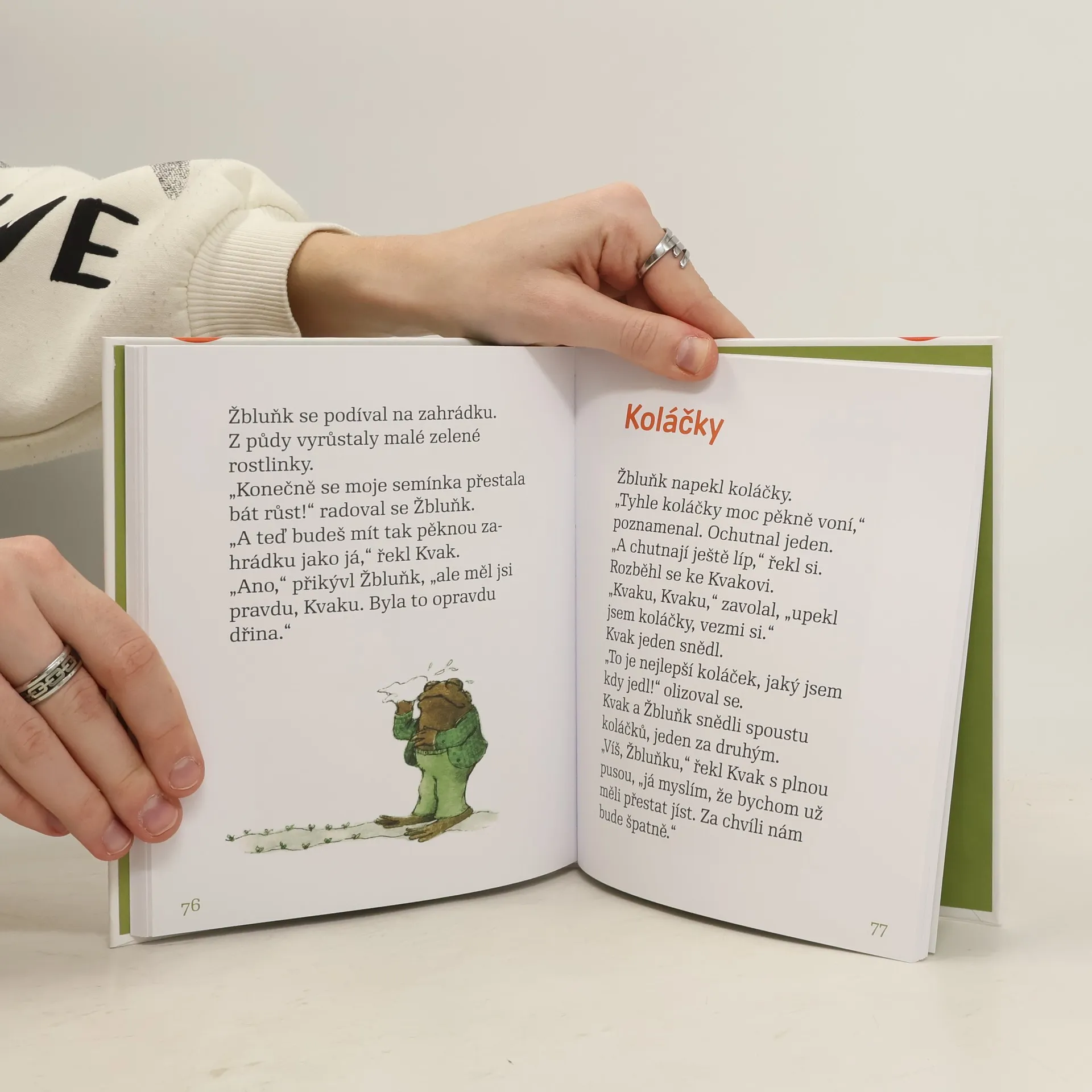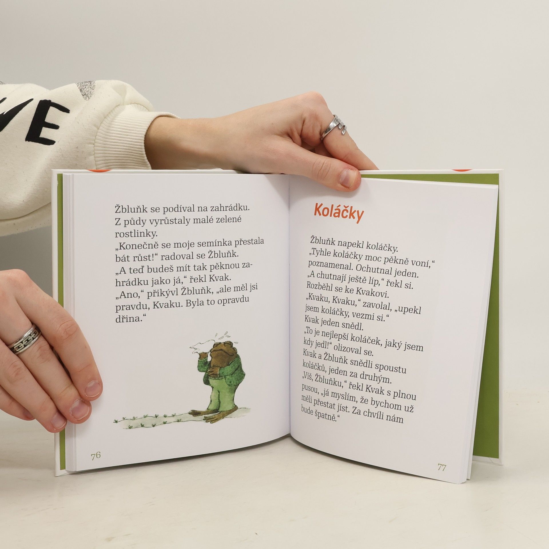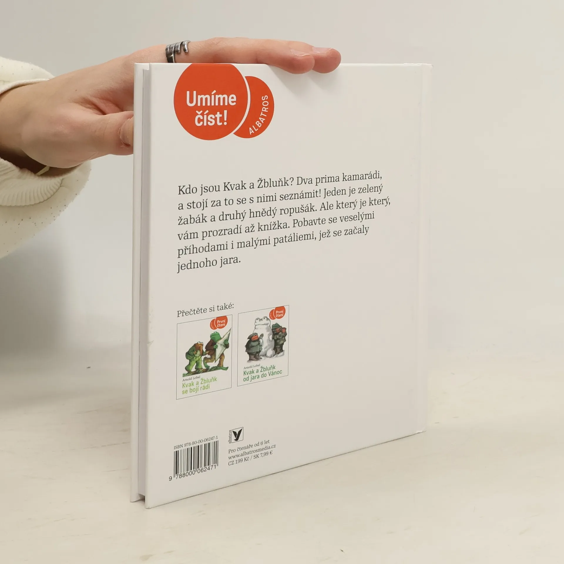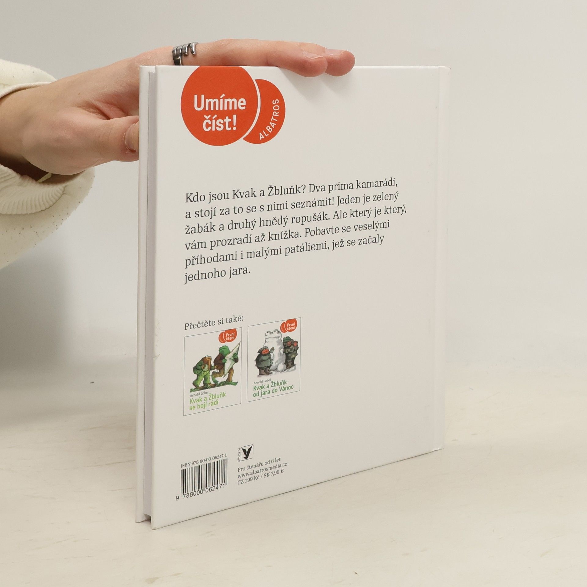 Úsměvné a hřejivé vyprávění o dvou kamarádech, zeleném žabákovi Kvakovi a hnědém ropušákovi Žbluňkovi potěšilo čtenáře nejen v zemi svého vzniku, ale i u nás (včetně dalších pokračování). Kdo by si tedy znovu rád nepřečetl o drobných příhodách a patáliích, které potkaly oba přátele, když se na jaře probudili ze zimního spánku. Třeba právě o tom, jak hledali ztracený knoflík, jak se koupali v řece, jak pěstovali květiny či jak statečně utíkali před draky a obry.