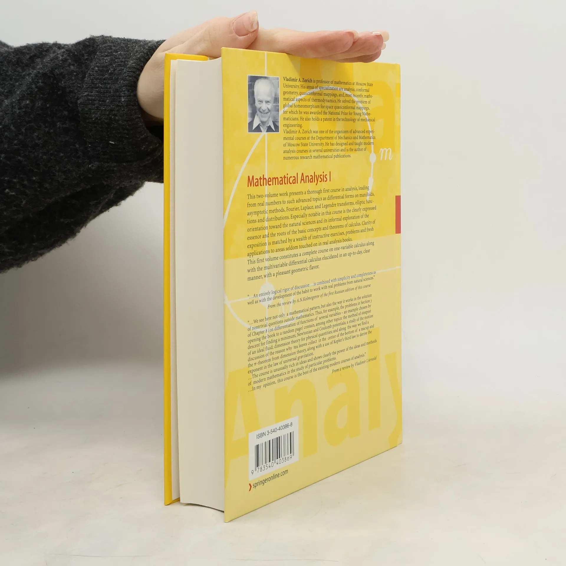 FIRST VOLUME OF THE AMAZING 2 VOLUME ANALYSIS TEXT BY THE INTERNATIONALLY REKNOWNED EXPERT,BASED ON COURSES TAUGHT AT MOSCOW STATE UNIVERSITY FOR DECADES TO GIFTED FRESHMAN,UNIQUE IN IT'S APPROACH IN THAT IT COMBINES THE HARD THEORY OF REAL AND COMPLEX ANALYSIS AND APPLICATIONS TO PHYSICS IN THE SAME PRESENTATION. MOST ANALYSIS TEXTS DON'T COVER BOTH AND THIS PRESENTATION IS VERY UNIQUE IN THIS MANNER. THIS IS A NEARLY PERFECT COPY OF THE 2004 1ST HARDCOVER EDITION,A GREAT COPY FOR CLASS!