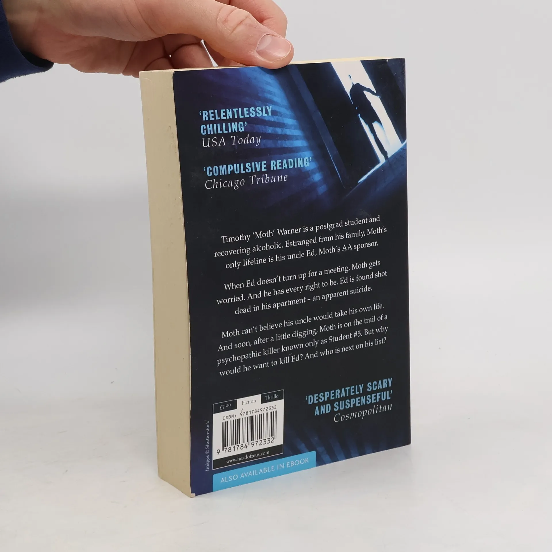 'Timothy 'Moth' Turner is a postgrad student and recovering alcoholic. Estranged from his family, Moth's only lifeline is his uncle Ed, a recovered alcoholic and Moth's AA sponsor. When Ed doesn't turn up for a meeting, Moth gets worried. And he has every right to be. Ed is found shot dead in his apartment in an apparent suicide. Moth can't believe his uncle would take his own life. And soon, after a little bit of digging, Ed is on the trail of a psychopathic killer known only as Student #5. But why would he want to kill Ed? And who is next on his list...