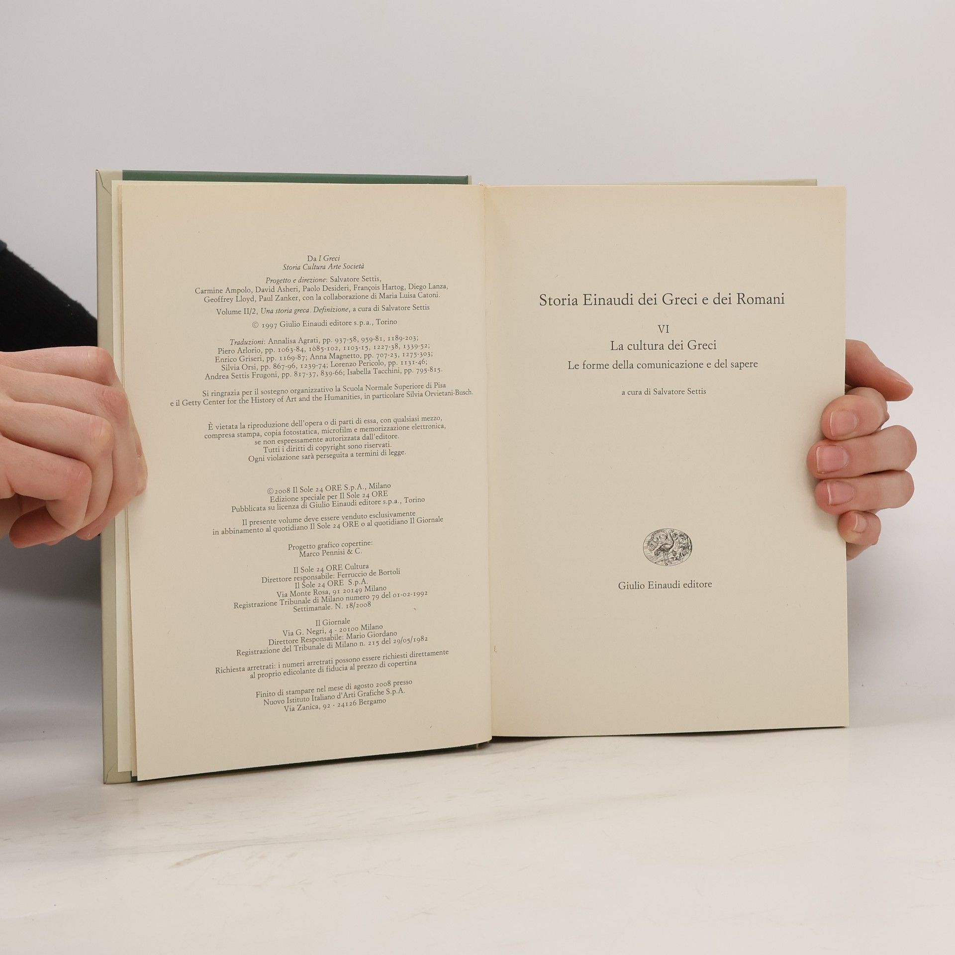 Storia Einaudi dei Greci e dei Romani 6. La cultura dei Greci, Collectif d'auteurs