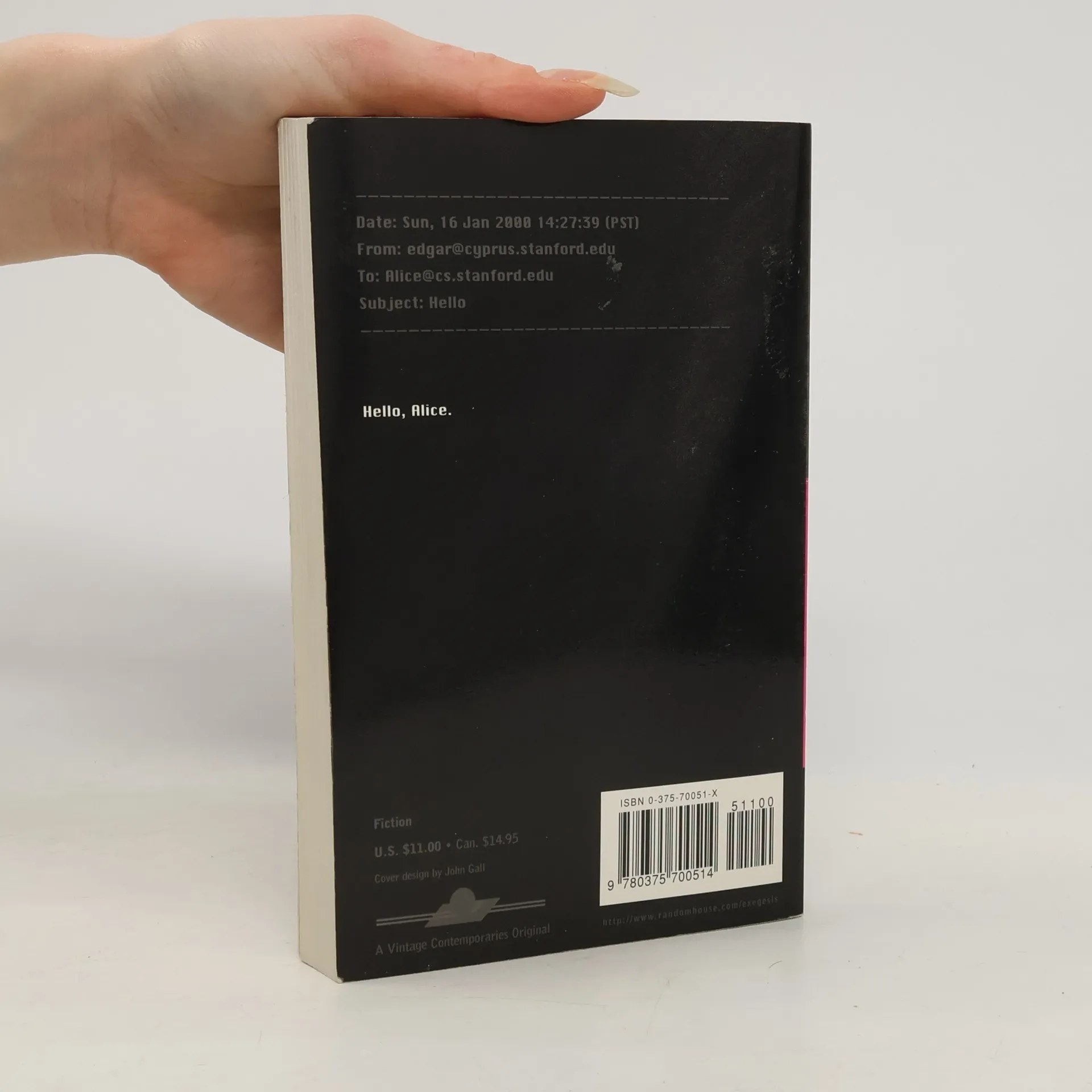 ------------------------------------------------------------------ Date: Sun, 16 Jan 2000 14:27:39 (PST) From: edgar@cyprus.stanford.edu To: Alice@cs.stanford.edu Subject: Hello ------------------------------------------------------------------ Hello, Alice.