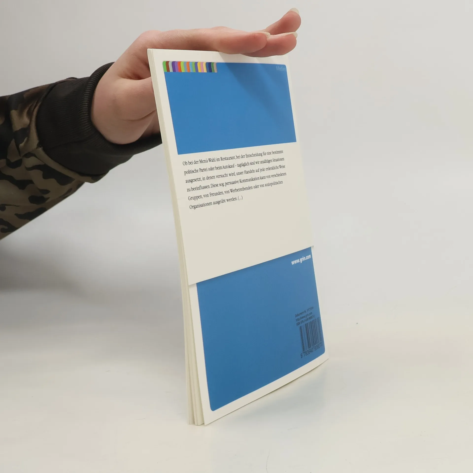 Studienarbeit aus dem Jahr 2011 im Fachbereich Medien / Kommunikation - Medien und Politik, Pol. Kommunikation, Note: 1,0, Friedrich-Schiller-Universität Jena, Sprache: Deutsch, Abstract: Ob bei der Menü-Wahl im Restaurant, bei der Entscheidung für eine bestimmte politische Partei oder beim Autokauf - tagtäglich sind wir unzähligen Situationen ausgesetzt, in denen versucht wird, unser Handeln auf jede erdenkliche Weise zu beeinflussen. Diese sog. persuasive Kommunikation kann von verschiedenen Gruppen, von Freunden, von Werbetreibenden oder von soziopolitischen Organisationen ausgeübt werden. Sie kann dem Kommunikator nutzen, kann sich aber auch karitativ oder gänzlich neutral verhalten. Fakt ist, dass wir uns den Persuasionversuchen - auch wenn wir um sie wissen - nicht entziehen können. Die Ursprünge der Überredungskunst liegen in der Antike. ARISTOTELES und andere beschrieben mit der Rhetorik ein Mittel zur Beeinflussung von Meinungen und Entscheidungsprozessen. Seit nun mehr 80 Jahren befasst sich auch die Sozialforschung mit Fragen der Einstellungsänderung. In Nachzug des Zweiten Weltkriegs rückten zunächst unter dem Begriff Propagandaforschung Aspekte der Persuasion in das Interesse der Forscher. Einen wichtigen Impuls gab hierbei das United States Department of War, das die Überzeugungswirkung von eigens angefertigten Filmen auf Soldaten der Streitkräfte ergründen wollte. Später waren es vor allem die Forscher um Carl I. Hovland, die durch ihre umfangreichen Yale Studies die Grundlagen für die moderne Persuasionsforschung schufen und die nachfolgende Forschung entscheidend prägten. Der Umfang der vorliegenden Arbeit erlaubt es leider nicht, eine umfassende Darstellung anzubieten und wird sich daher auf einige wenige Aspekte beschränken. Zunächst gilt es, den Begriff Persuasion zu definieren und von anderen verwandten Phänomenen abzugrenzen. Nachfolgend sollen zentrale Punkte der Persuasionsforschung sowie Faktoren im Persuasionsprozess kurz vorgestellt werden