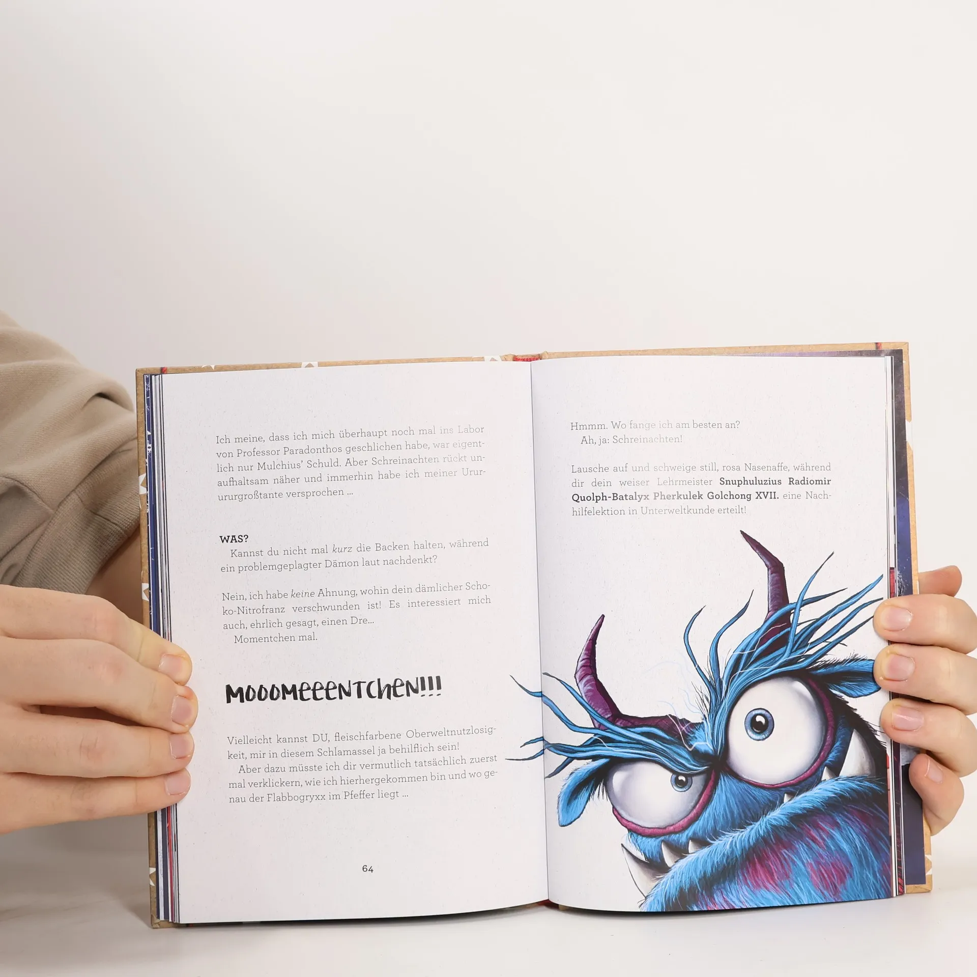 Fürchterlich komischer Lesespaß für rätselbegeisterte Kinder ab 8 Jahren Dieses Buch ist kein normales Buch! Denn wenn man darin blättert, bekommt man es mit einem kleinen Dämon zu tun, der davon alles andere als begeistert ist. Ein lustiges und interaktives Vergnügen für Kinder und ein ideales Geschenk für Fans von “Das kleine böse Buch”, “Bitte nicht öffnen” und “Cornibus & Co”. Dämonisch lustige Weihnachten Der kleine Dämon Snuphuluzius ist zurück – und steckt wieder mal in Schwierigkeiten. Durch das magische Türchen eines Adventskalenders ist er irrtümlich in der Oberwelt gelandet. Dabei hat er gerade viel Wichtigeres zu tun! In der Unterwelt steht nämlich das Fest „Schreinachten“ bevor und Snuphuluzius will für seine Tante Bratilda ein absolut fantastisches Geschenk besorgen! Der kleine Dämon braucht nun dringend die Hilfe der Leserinnen und Leser: Denn ein richtig tolles Geschenk findet man am besten mit Hilfe von Zauberei. Doch Snuphuluzius’ magische Anweisungen sind meistens knifflig, manchmal rätselhaft – aber immer zum Brüllen komisch! Originelles Konzept: Achtung, in diesem Buch spukt es! Interaktive Geschichte: Kurze Episoden und knifflige Rätsel Tolle Optik: Mit unschlagbar coolen Bildern von Thorsten Berger Kurze Texthappen: Auch geeignet für schwache Leser und Lesemuffel Extra-Motivation: Zu diesem Buch gibt es ein Quiz bei Antolin Über das Buch: Die direkte Leseransprache und die interaktiven Rätsel machen „Das Buch mit dem Fluch – Pack das nicht aus!“ zu einem ungewöhnlichen Lesevergnügen für Jungen und Mädchen ab der 3. Klasse.