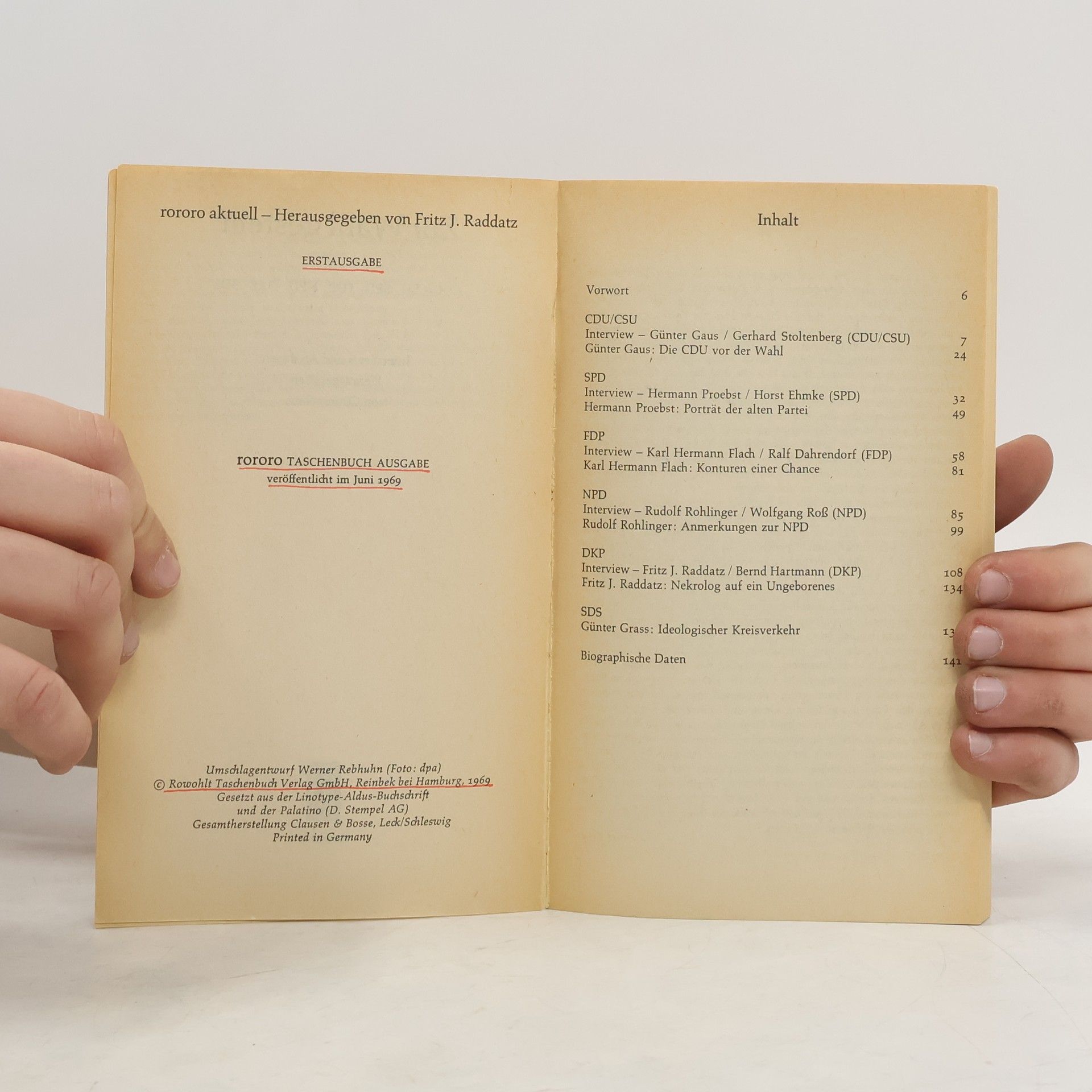 CDU/CSU, SPD, FDP, NPD, DKP, SDS