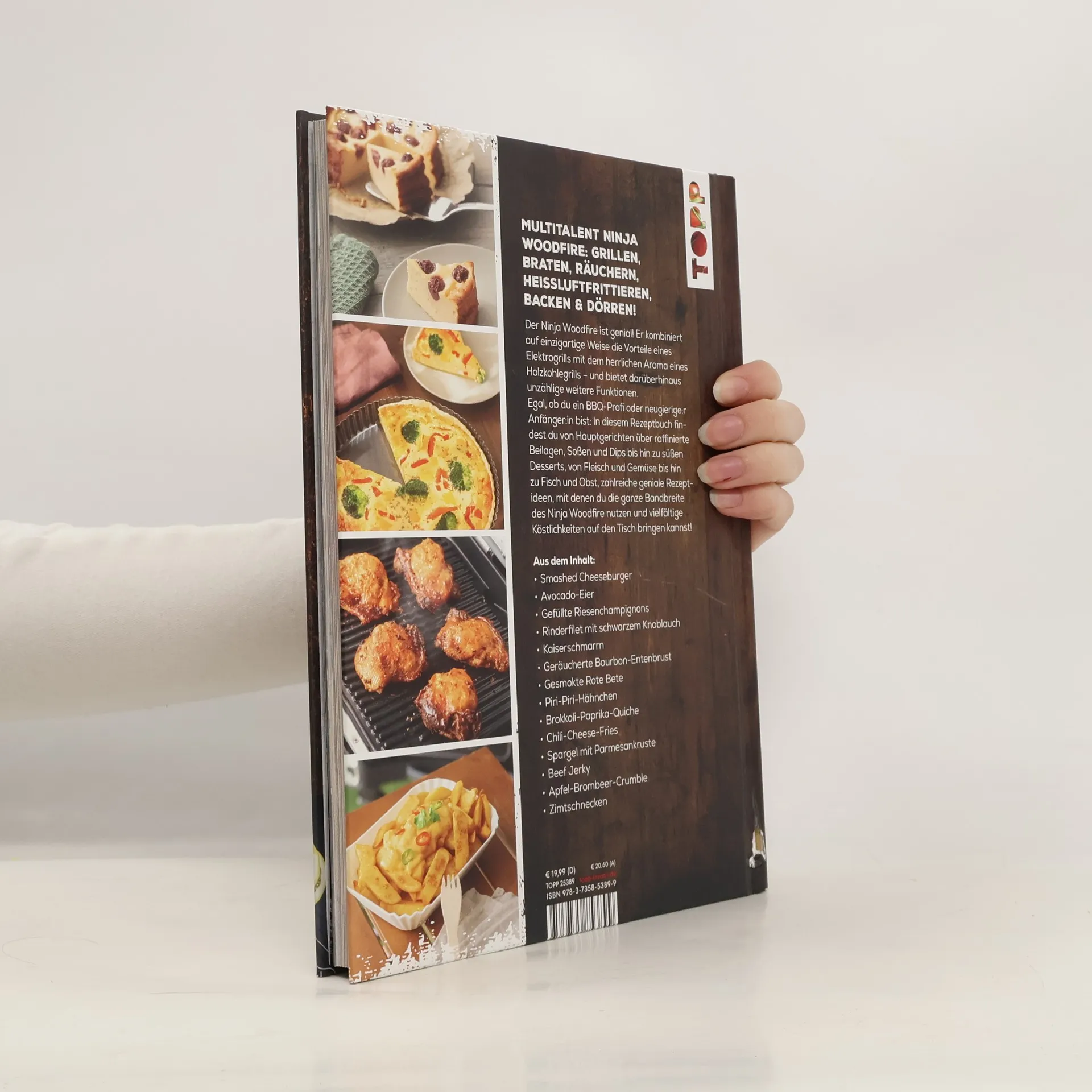 <strong>Grillen? Klar, aber auch noch viel, viel mehr! </strong> Einen Elektrogrill mit Kohlearoma gibt es nicht? Oh doch! Der <strong>Ninja Woodfire</strong> kombiniert auf einzigartige Weise die Vorteile eines <strong>Elektrogrills</strong> mit dem herrlichen Aroma eines Holzkohlegrills - und bietet darüberhinaus unzählige weitere Funktionen. Mit diesem Buch entdeckst du sie alle und wirst ruckzuck zum Grill-/Dünst-/Smoke-/Brat-Ninja! Egal, ob du ein BBQ-Profi oder neugierige:r Anfänger:in bist – hier findest du alles, was du brauchst, um deine Gäste zu beeindrucken und die Geschmacksknospen zum Tanzen zu bringen. Entdecke die vier Hauptfunktionen – <strong>Grillen, Smoken, Braten und Heißluft-Frittieren</strong> – und genieße allerlei Köstlichenkeiten, von <strong>Hauptgerichten </strong>über raffinierte <strong>Beilagen</strong>, <strong>Soßen </strong>und <strong>Dips </strong>bis hin zu süßen <strong>Desserts</strong>, von <strong>Fleisch </strong>und <strong>Gemüse </strong>bis hin zu <strong>Fisch</strong> und <strong>Obst</strong>. Natürlich gibt es auch Tipps zum <strong>Backen, Dörren, Räuchern und Aufwärmen</strong>. Außerdem ist jedes Rezept so gestaltet, dass du die Mengenangaben ganz einfach an die Größe deines Grills anpassen kannst. <strong>Das erwartet dich: </strong> <ul> <li>Funktionen, Benutzung, Bedienung und Reinigung des Ninja Woodfire</li> <li>Profi-Grilltipps zum Grillen, Smoken, Braten und Heißluftfrittieren</li> <li>leckere Gemüse-, Fleisch- und Fischrezepte (inkl. vegetarischer und veganer Optionen) für alle Ninja Woodfire Geräte</li> <li>mit hochwertigen Farbfotos, die zum sofort Loslegen anregen</li></ul> Eine kleine Auswahl aus dem Inhalt, die dir garantiert das Wasser im Munde zusammenlaufen lassen wird: <ul> <li>Fried Chicken à la KFC</li> <li>Rinderfilet mit schwarzem Knoblauch</li> <li>Currywurst Deluxe</li> <li>Gesmokter Schweinelachs</li> <li>Pulled Pork-Burger</li> <li>Geräucherte Entenbrust mit Bourbon-Glasur</li> <li>Garnelen im Speckmantel</li> <li>Gegrillter Lachs</li> <li>Spargel mit Parmesankruste</li> <li>Gefüllte Zucchini</li> <li>Frittierter Kürbis</li> <li>Tequila-Coleslaw</li> <li>Brotsalat</li> <li>Knoblauchfritten mit Käsesoße</li> <li>Smashed Potatoes</li> <li>Avocado-Eier</li> <li>Teufelssoße</li> <li>Schwarze Knoblauchkräuterbutter</li> <li>Quarkbällchen</li> <li>Kirsch-Cheesecake</li> <li>Zimtschnecken</li> <li>Bratapfel mit Vanillesoße</li></ul> Lass dich von den zahlreichen Rezepten inspirieren und starte gut vorbereitet in die Grillsaison!
