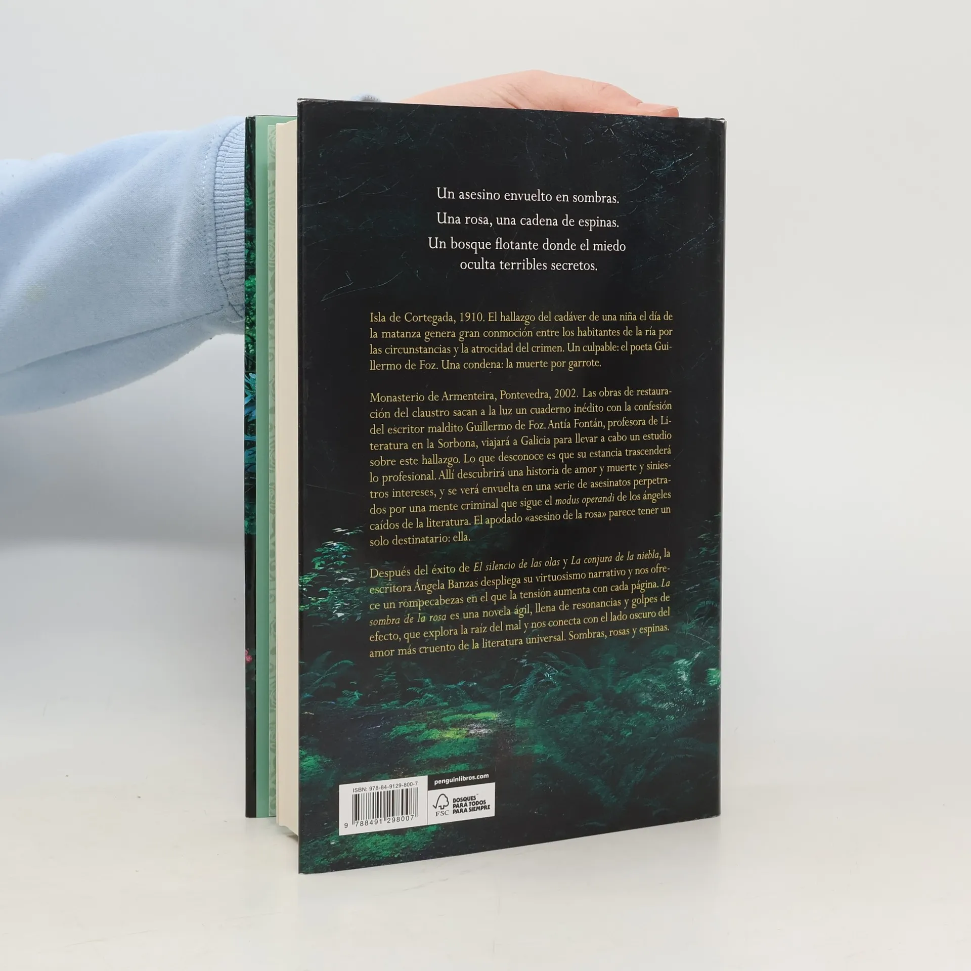 Un asesino en serie obsesionado con los crímenes de la literatura.Una profesora en el centro de una investigación.Una experiencia de lectura sin tregua.VUELVE ÁNGELA BANZASLA VOZ DEL THRILLER GALLEGO Un asesino envuelto en sombras, una rosa, una cadena de espinas. Un bosque flotante donde el miedo oculta terribles secretos.Isla de Cortegada, 1910. El hallazgo del cadáver de una niña el día de la matanza genera gran conmoción entre los habitantes de la ría por las circunstancias y la atrocidad del crimen. Un culpable, el poeta Guillermo de Foz. Una condena, la muerte a garrote.Monasterio de Armenteira, Pontevedra, 2002. Las obras de restauración del claustro sacan a la luz un cuaderno inédito con la confesión del escritor maldito Guillermo de Foz. Antía Fontán, profesora de Literatura en La Sorbona, viajará a Galicia para llevar a cabo un estudio sobre este hallazgo. Lo que desconoce es que su estancia trascenderá lo profesional. Allí descubrirá una historia de amor y muerte, siniestros intereses y se verá envuelta en una serie de asesinatos perpetrados por una mente criminal que sigue el modus operandi de los ángeles caídos de la literatura. El apodado Asesino de la Rosa parece tener un solo ella.Después del éxito de El silencio de las olas y La conjura de la niebla, la escritora Ángela Banzas despliega su virtuosismo narrativo y nos ofrece un rompecabezas en el que la tensión aumenta con cada página. La sombra de la rosa es una novela ágil, llena de resonancias y golpes de efecto, que explora la raíz del mal y nos conecta con el lado oscuro del amor y el más cruento de la literatura universal. Sombras, rosas y espinas.