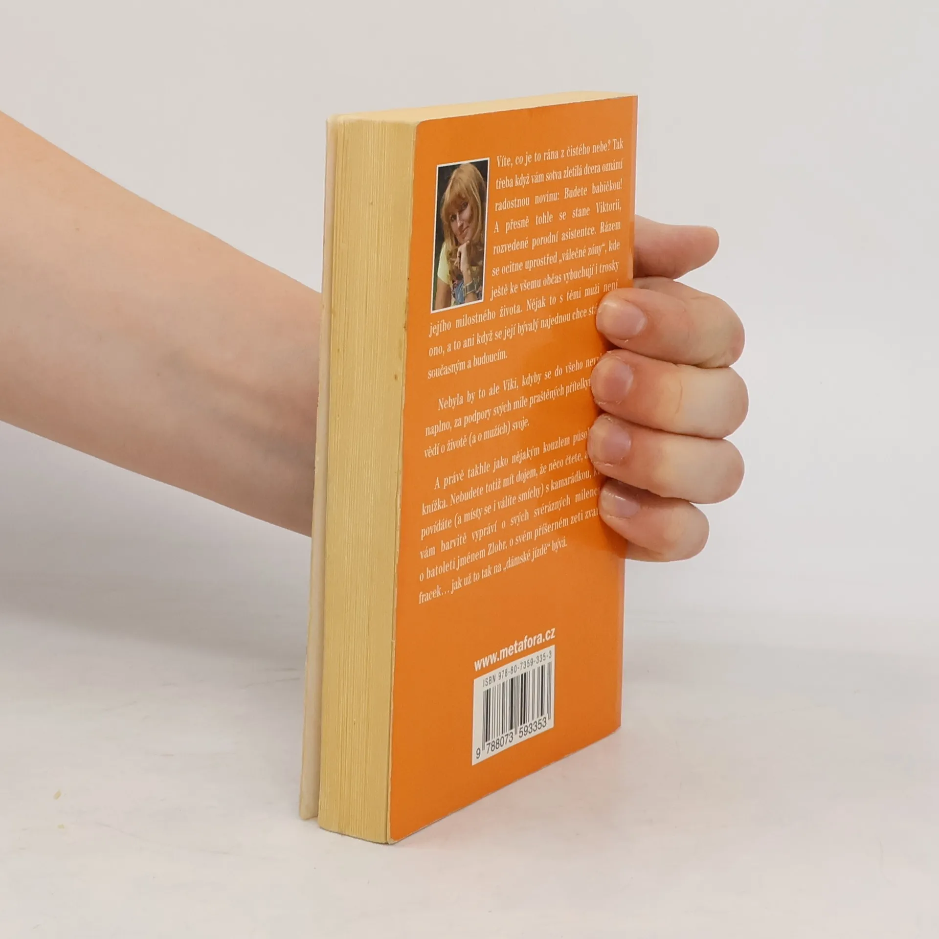 Ve čtyřiceti život nekončí, ani když vás náhle udělají babičkou a váš milostný život se změní v bojiště… Humorný příběh o ženách a pro ženy, který dodá zaručenou dávku životního optimismu. Víte, co je to rána z čistého nebe? Tak třeba když vám sotva zletilá dcera oznámí, že brzy budete babičkou! A přesně tohle se stane Viktorii, rozvedené porodní asistentce. Rázem se ocitne uprostřed bojové zóny, kde ještě ke všemu občas vybuchují i trosky jejího milostného života. Nějak to s těmi muži není ono, a to ani když se její bývalý najednou chce stát zase současným a budoucím. Nebyla by to ale Viky, kdyby se do všeho nevrhala naplno, za podpory svých mile praštěných přítelkyň, které vědí o životě svoje. A tak si nakonec poradí se vším, i se svým příšerným zetěm zvaným fracek…