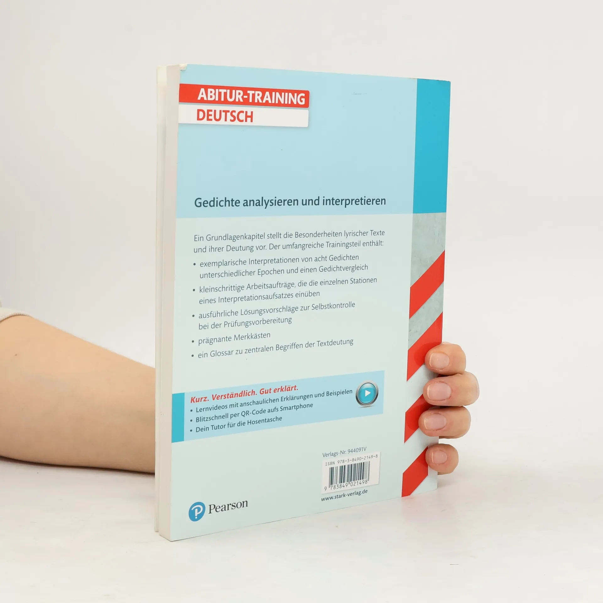 Abitur-Training – Deutsch Gedichte analysieren und interpretieren Ideales Übungsmaterial zum Thema Gedichtanalyse in der Oberstufe . Das Buch ermöglicht eine zielgerichtete Vorbereitung von Klausuren und Abitur . Der Band enthält: ein Grundlagenkapitel, das die Besonderheiten lyrischer Texte und ihrer Deutung vorstellt acht exemplarische Interpretationen von Gedichten unterschiedlicher Epochen sowie einen Gedichtvergleich strukturierende Arbeitsaufträge, mit denen das schrittweise Vorgehen bei einem Interpretationsaufsatz geübt wird ausführliche Lösungsvorschläge zur Selbstkontrolle hilfreiche Merkkästen ein Glossar zu zentralen Begriffen der Textdeutung Für einen noch größeren Lernerfolg ist der Band mit Lernvideos ausgestattet, die zentrale Inhalte vertiefend veranschaulichen.