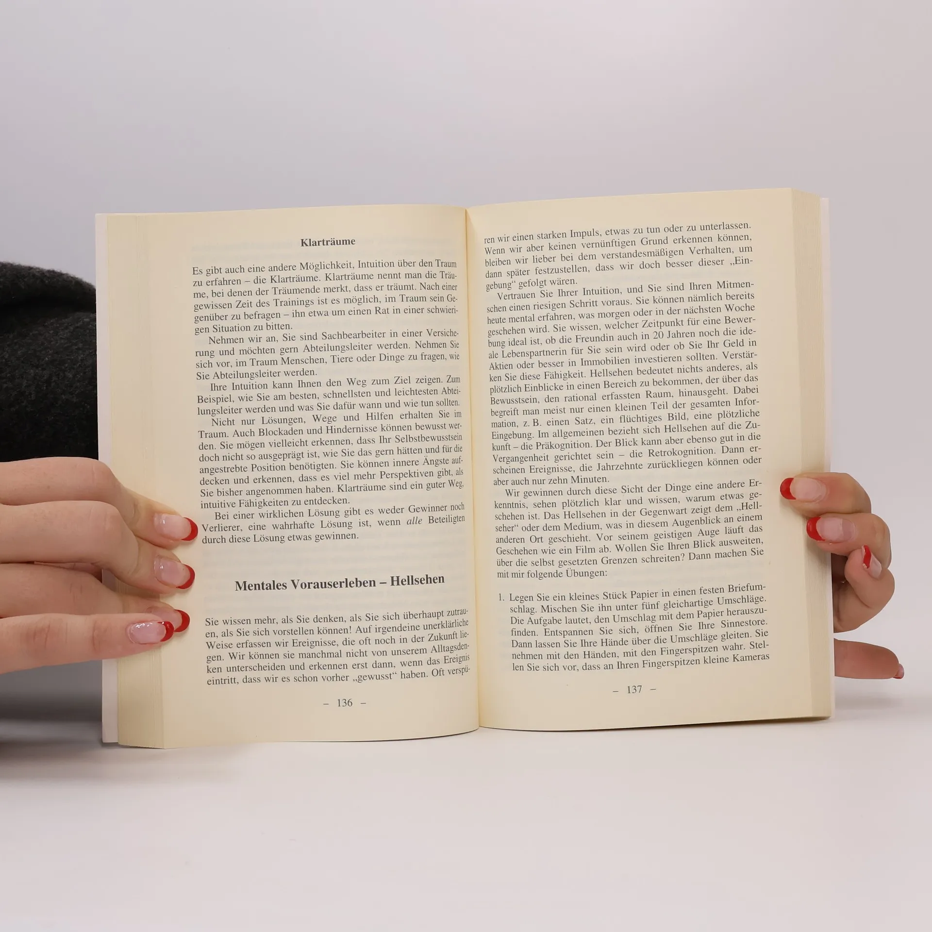 Intuition ist für den Menschen ebenso selbstverständlich wie der Instinkt für das Tier. Der Unterschied liegt darin, dass das Tier keine Wahl hat, es muss dem Instinkt folgen. Ganz anders geht es dem Er kann entscheiden, ob er seinem Verstand, seiner Intuition oder einer Kombination aus beiden folgen möchte. Die Fähigkeit zur Intuition ist in jedem Menschen angelegt, aber durch die Überbetonung des Verstandes unterdrückt und fast verkümmert. Es bedarf der Erinnerung, der Entfaltung unserer intuitiven Fähigkeiten sowie einer spirituellen Reife, um Intuition wieder bewusst empfangen zu können. Die Schwierigkeit, auf Einfälle, Gedankenblitze oder ungewöhnliche Gedanken zu vertrauen, liegt einfach darin, dass Intuition dem Verstand, dem Gefühl, der Gewohnheit widersprechen kann. Das Gefühl tendiert dazu, den bequemeren Weg zu wählen, der Verstand kommt mit Argumenten, kann häufig systematisch eine Botschaft der Intuition widerlegen. So folgen wir meist lieber dem Verstand, um festzustellen, dass wir dieses oder jenes schon viel früher gewusst haben, es aber nicht beachtet haben oder es uns unglaubwürdig erschien. Allerdings wäre unser Leben ganz anders verlaufen, wären wir den intuitiven Impulsen gefolgt. Denn Situationen vorauszuerleben, Gedanken anderer Menschen zu lesen, Gedanken mental zu übermitteln, ist ganz normal für den, der sich auf sein Potenzial verlässt. Wer der Intuition Raum zur Entfaltung in seinem Leben gewährt, kann dann den Schritt von der Intuition zur Super-Intuition vollziehen. Dann gibt es keine Fragen mehr, sondern nur noch Führung.