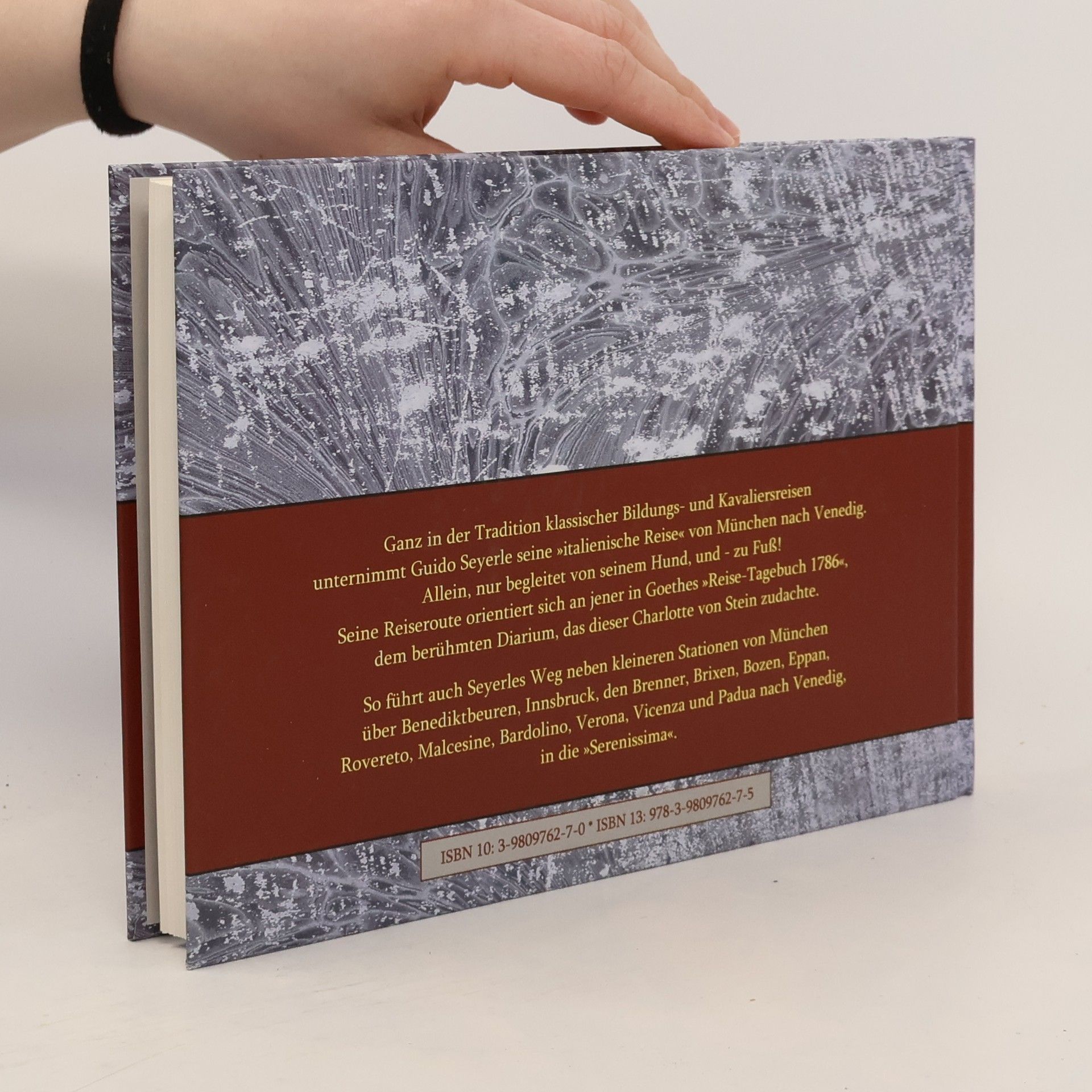 In der Tradition klassischer Bildungs- und Kavaliersreisen unternimmt Guido Seyerle seine 'italienische Reise' von München nach Venedig. Ganz allein, nur begleitet von seinem Hund, und - zu Fuß! Seine Reiseroute orientiert sich an jener in Goethes 'Reise-Tagebuch 1786', dem berühmten Diarium, das dieser Charlotte von Stein zudachte. So führt auch Seyerles Weg neben kleineren Stationen von München über Benediktbeuren, Innsbruck, den Brenner, Brixen, Bozen, Eppan, Rovereto, Malcesine, Bardolino, Verona, Vicenza und Padua nach Venedig, in die 'Serenissima'. Begleiten Sie 'Goethes Musensohn' auf seiner aufregenden Spurensuche.