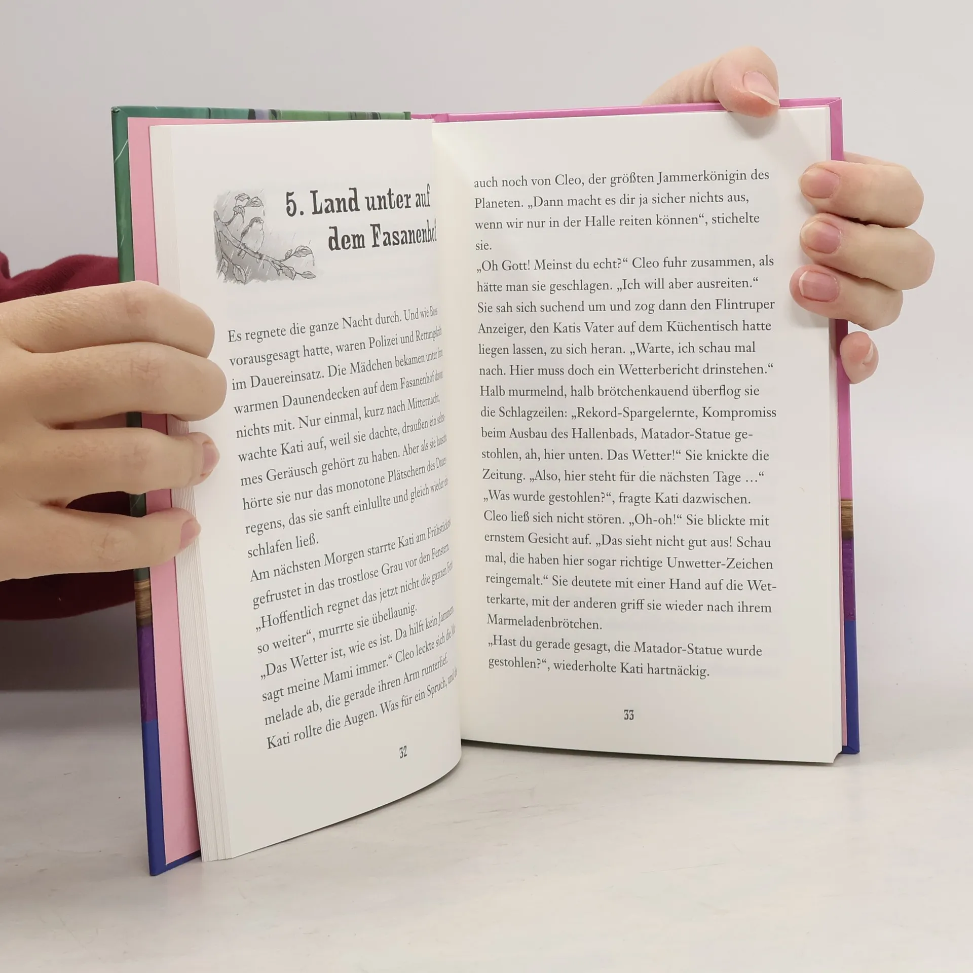 Sintflutartige Regenfälle in Flintrup. Vor lauter Langeweile kommen Kati und Cleo, ohne es zu ahnen, einer Diebesbande auf die Spur. Bei der Jagd auf die Verbrecher geraten die Mädchen in allergrößte Gefahr. Ihre Lage scheint aussichtslos! Doch Katis Fuchs Azuro ist eben ein ganz besonderes Pferd ...