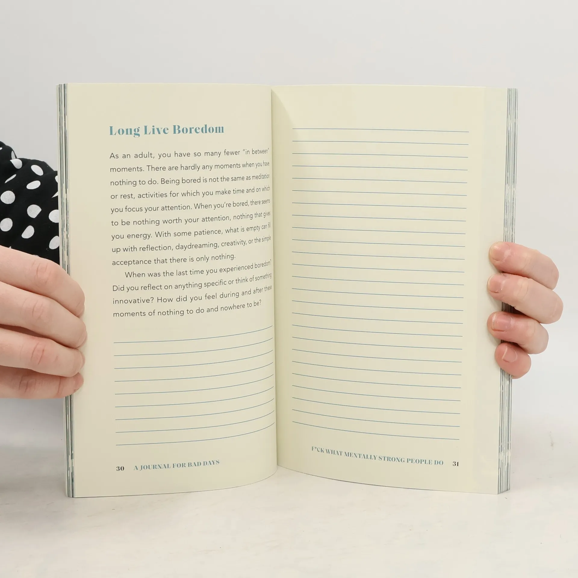 Get through the tough times with dozens of prompts and activities in this companion journal to the popular Handbook for Bad Days. A Journal for Bad Days provides the tools to help you through tough times. Inside, you will find questions to ponder while facing the worst days with courage, compassion, and your head held high. This journal provides sixty prompts inspired by the topics referenced in the popular Handbook for Bad Days, including the benefits of a good cry, the importance of a social media detox, the power of saying “yes, but…”, and the gift of an apology. In these prompts, you can document your personal stories, thoughts, and intimate contemplations about grief, living in the present, ego, and more. Bad days are part of being human, but they no longer have to control you. Instead, you can take charge of your low days and transform them, and yourself.
