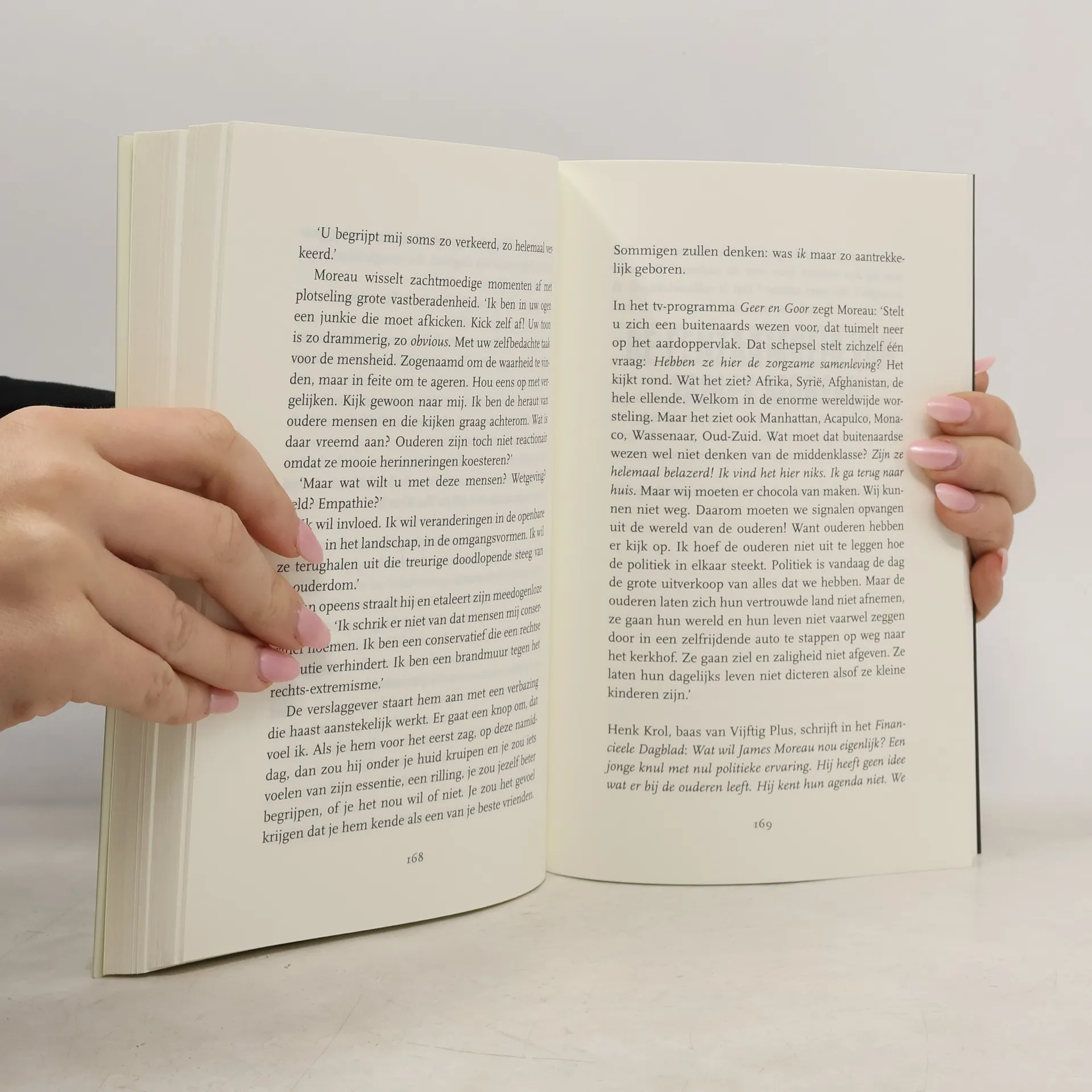 Schrijfster Anita Koetsier mag als fly on the wall mee met de verkiezingscampagne van James Moreau, de nieuwe leider van een rechtse splinterpartij. Met een verrassend simpel programma schiet hij als een komeet omhoog in de peilingen. Wat spreekt de mensen zo aan in het verhaal van deze jonge, knappe politicus? In zijn ambities om een brede beweging te vormen, mobiliseert hij ook tegenkrachten. Moreau is geliefd, gevreesd én gehaat. De dag van de verkiezingen wordt de dag des oordeels.De populist is een speels en virtuoos geschreven roman vol stof voor discussie.