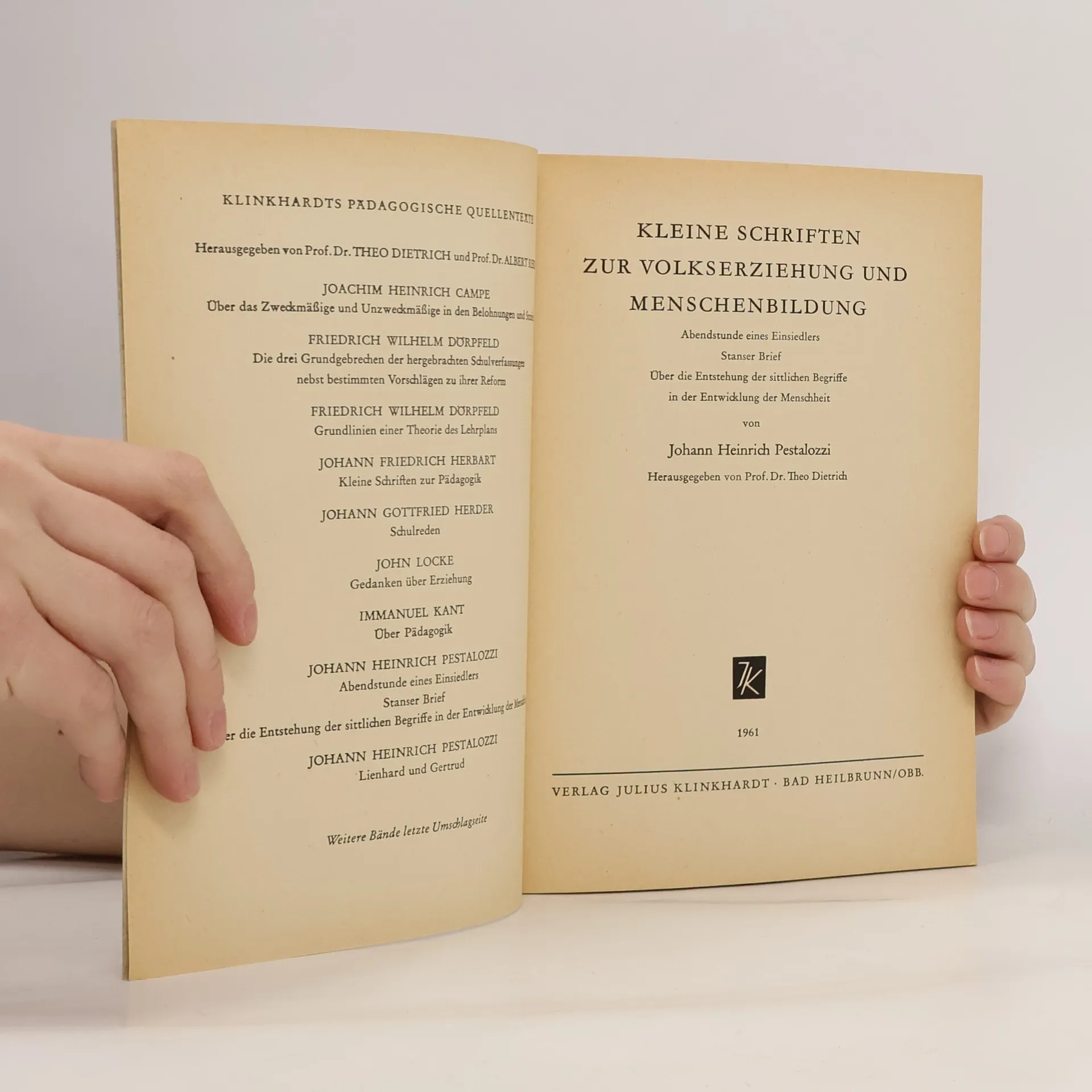 Kleine Schriften zur Volkserziehung und Menschenbildung, Johann Heinrich Pestalozzi
