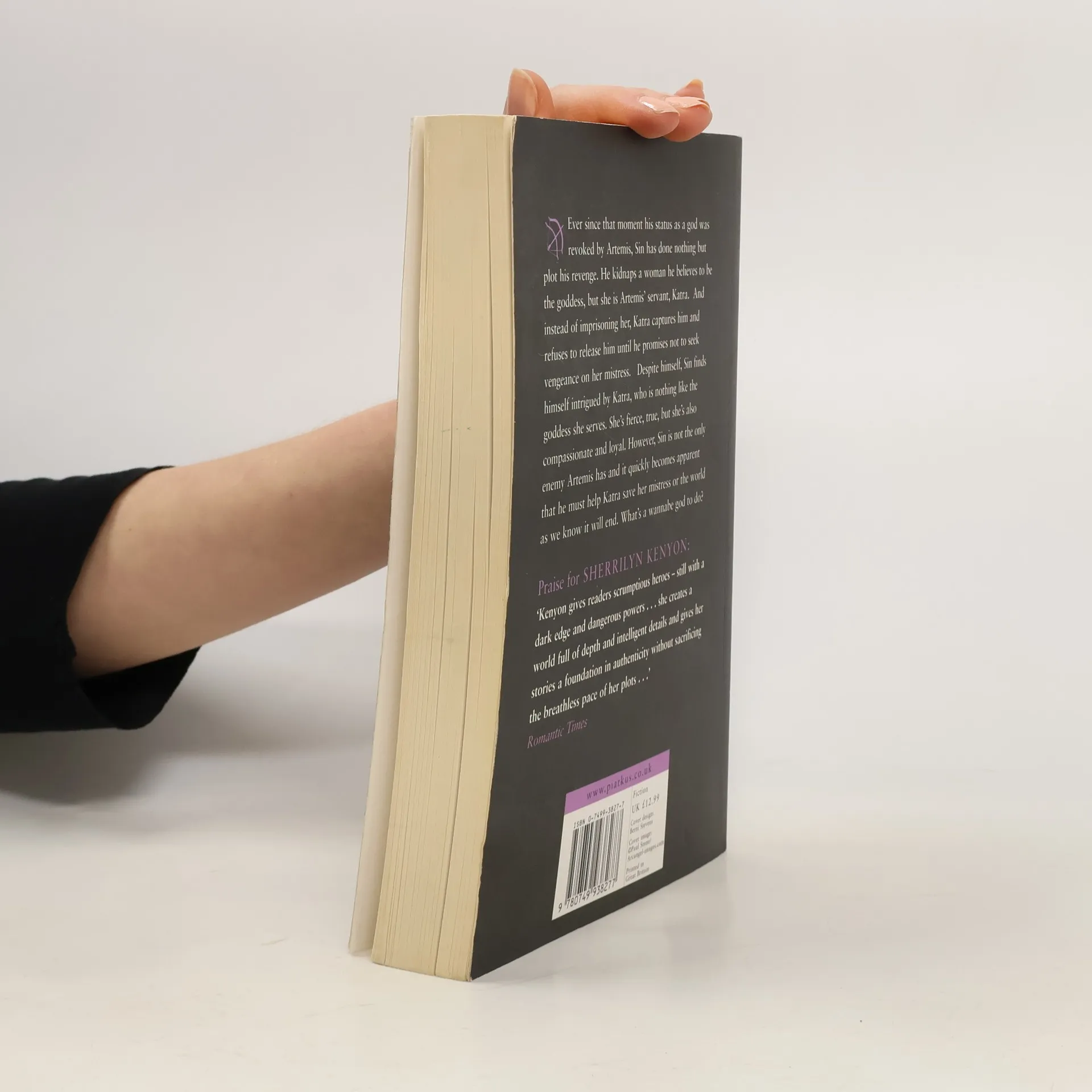 Ever since the moment his status as a god was revoked by Artemis, Sin has done nothing but plot his revenge. He kidnaps a woman he believes to be the goddess, but she's Artemis' servant Katra, who turns the tables and refuses to release him until he promises not to seek vengeance on her mistress.