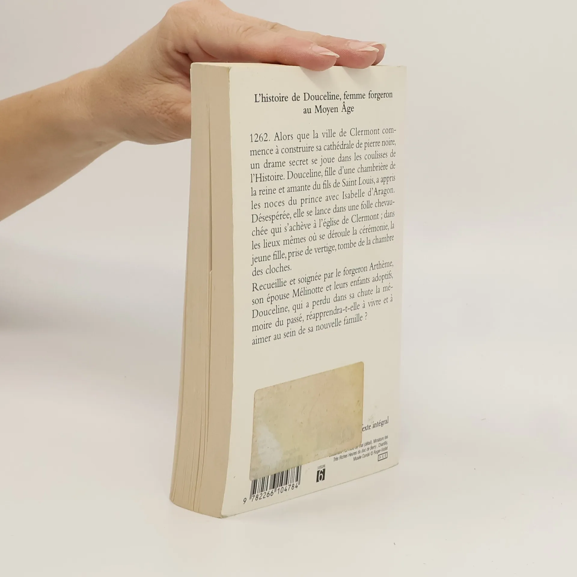 L'histoire de Douceline, femme forgeron au Moyen Age. 1262. Alors que la ville de Clermont commence à construire sa cathédrale de pierre noire, un drame secret se joue dans les coulisses de l'Histoire. Douceline, fille d'une chambrière de la reine et amante du fils de Saint Louis, a appris les noces du prince avec Isabelle d'Aragon. Désespérée, elle se lance dans une folle chevauchée qui s'achève à l'église de Clermont ; dans les lieux mêmes où se déroule la cérémonie, la jeune fille, prise de vertige, tombe de la chambre des cloches. Recueillie et soignée par le forgeron Arthème, son épouse Mélinotte et leurs enfants adoptifs, Douceline, qui a perdu dans sa chute la mémoire du passé, réapprendra-t-elle à vivre et à aimer au sein de sa nouvelle famille ?