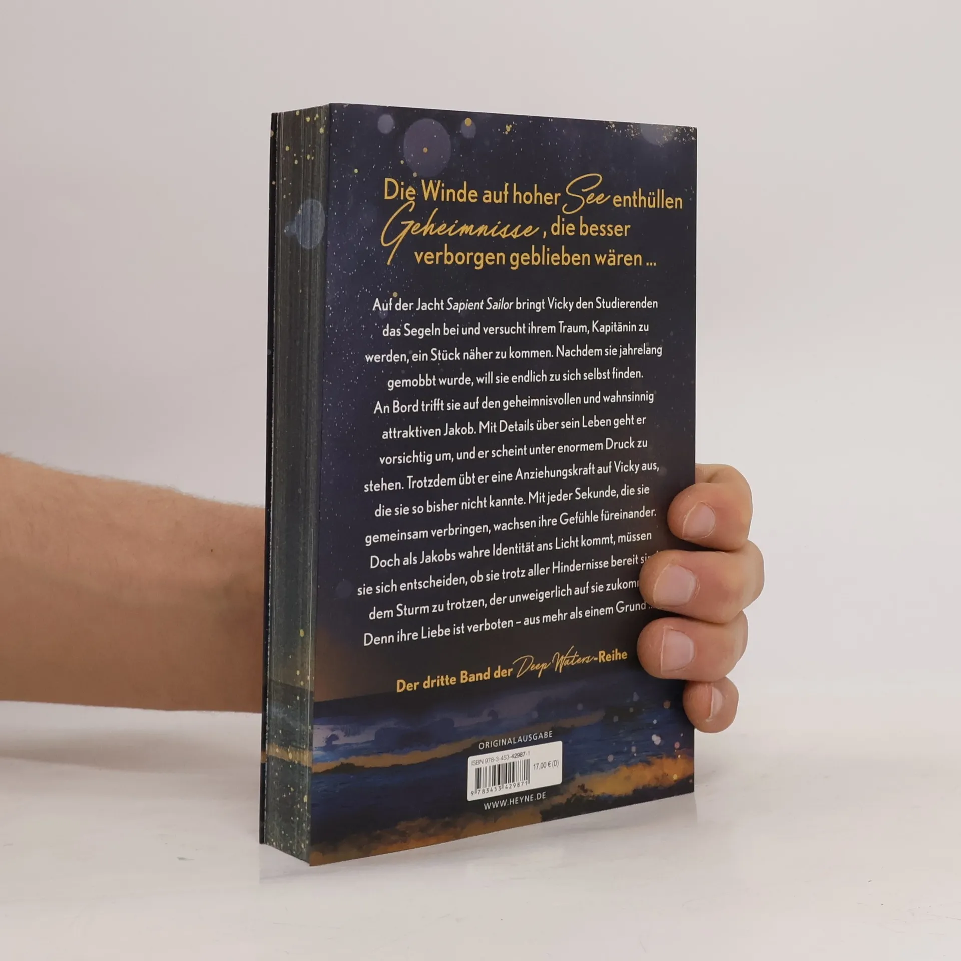 Die Winde auf hoher See enthüllen Geheimnisse, die besser verborgen geblieben wären …Auf der Jacht Sapient Sailor bringt Vicky den Studierenden das Segeln bei und versucht ihrem Traum, Kapitänin zu werden, ein Stück näher zu kommen. Nachdem sie jahrelang gemobbt wurde und eine Jugendstrafe ableisten musste, will sie endlich zu sich selbst finden. An Bord trifft sie auf den geheimnisvollen und wahnsinnig attraktiven Jakob. Mit Details über sein Leben geht er vorsichtig um, und er scheint unter enormem Druck zu stehen. Trotzdem übt er eine Anziehungskraft auf Vicky aus, die sie so bisher nicht kannte. Mit jeder Sekunde, die sie gemeinsam verbringen, wachsen ihre Gefühle füreinander. Doch als Jakobs wahre Identität ans Licht kommt, müssen sie sich entscheiden, ob sie trotz aller Hindernisse bereit sind, dem Sturm zu trotzen, der unweigerlich auf sie zukommt. Denn ihre Liebe ist verboten – aus mehr als einem Grund …