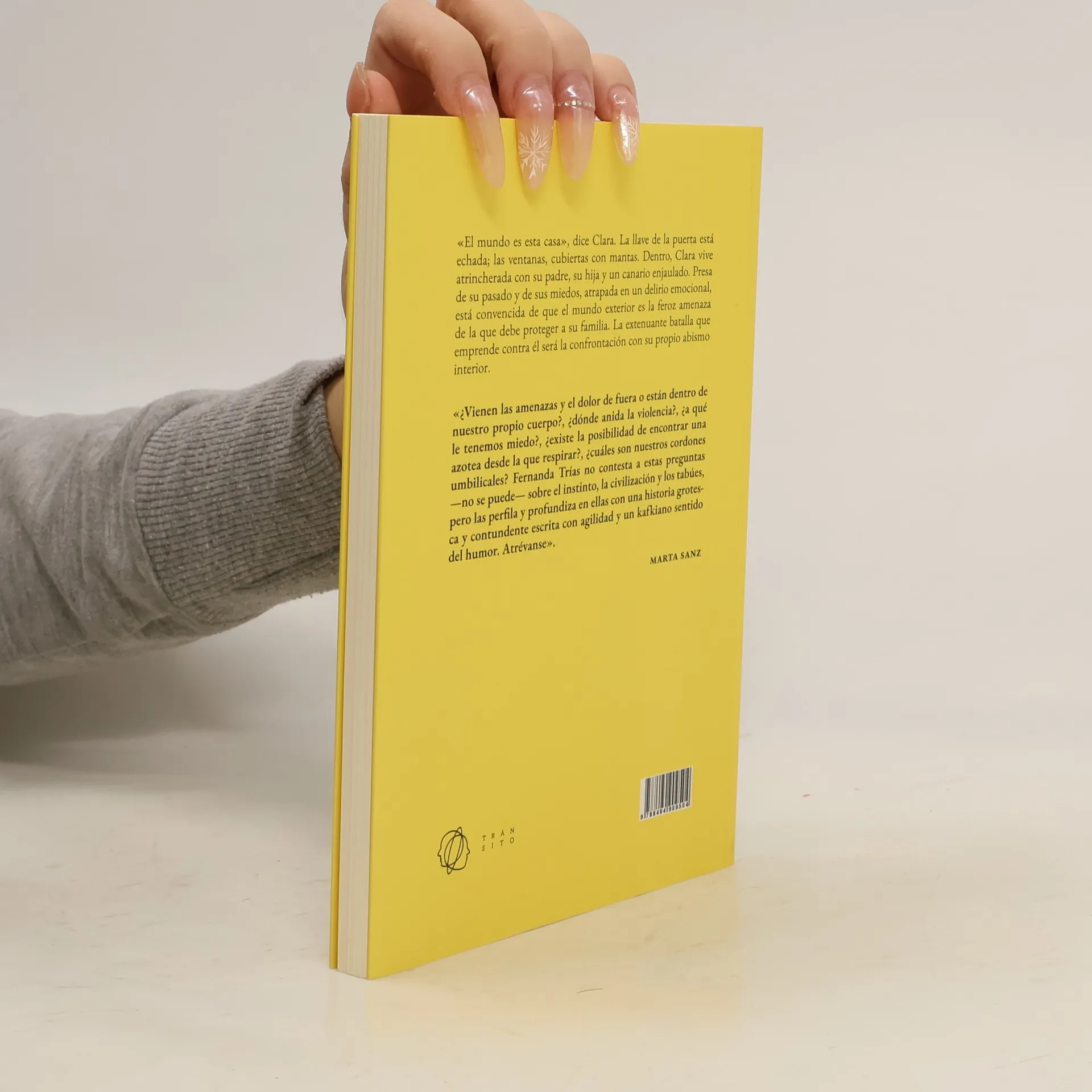 «El mundo es esta casa», dice Clara. La llave de la puerta está echada; las ventanas, cubiertas con mantas. Dentro, Clara vive atrincherada con su padre, su hija y un canario enjaulado. Presa de su pasado y de sus miedos, atrapada en un delirio emocional, está convencida de que el mundo exterior es la feroz amenaza de la que debe proteger a su familia. La extenuante batalla que emprende contra él será la confrontación con su propio abismo interior. «¿Vienen las amenazas y el dolor de fuera o están dentro de nuestro propio cuerpo?, ¿dónde anida la violencia?, ¿a qué le tenemos miedo?, ¿existe la posibilidad de encontrar una azotea desde la que respirar?, ¿cuáles son nuestros cordones umbilicales? Fernanda Trías no contesta a estas preguntas —no se puede— sobre el instinto, la civilización y los tabúes, pero las perfila y profundiza en ellas con una historia grotesca y contundente escrita con agilidad y un kafkiano sentido del humor. Atrévanse». —MARTA SANZ—