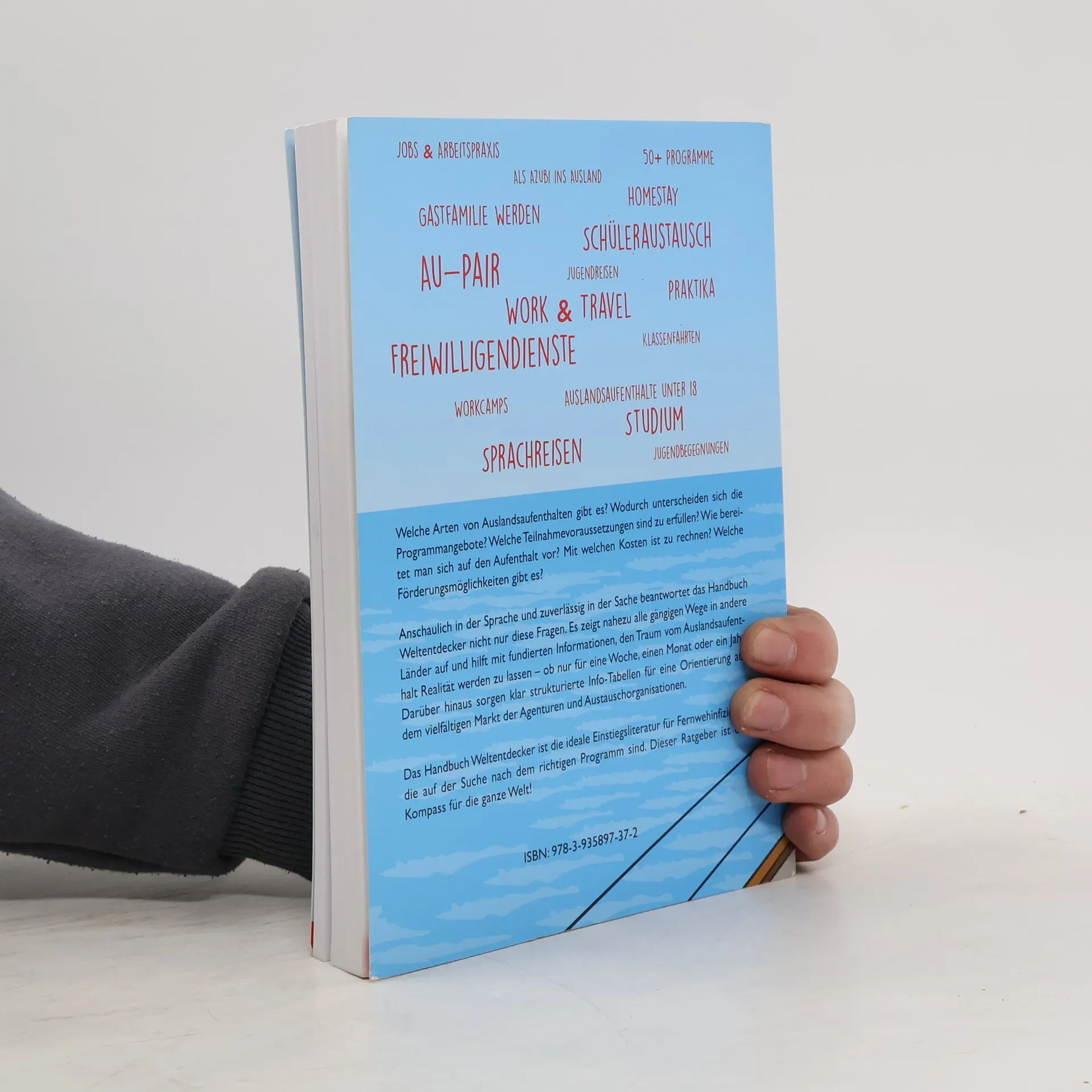 Wie ein Kompass weist das Handbuch Weltentdecker. Der Ratgeber für Auslandsaufenthalte den Weg ins Ausland und ist somit die ideale Einstiegsliteratur für Fernwehinfizierte. Programme wie Sprachreisen, Schüleraustausch, Au-Pair, Freiwilligendienste, Work & Travel, Praktika und Studium werden in eigenständigen Rubriken vorgestellt. Service-Tabellen helfen anschließend bei der Auswahl passender Programme und Anbieter. Der Ratgeber gibt fundierte Tipps rund um die Planung, Organisation und Finanzierung und unterstützt dabei, den Traum vom Auslandsaufenthalt Realität werden zu lassen.