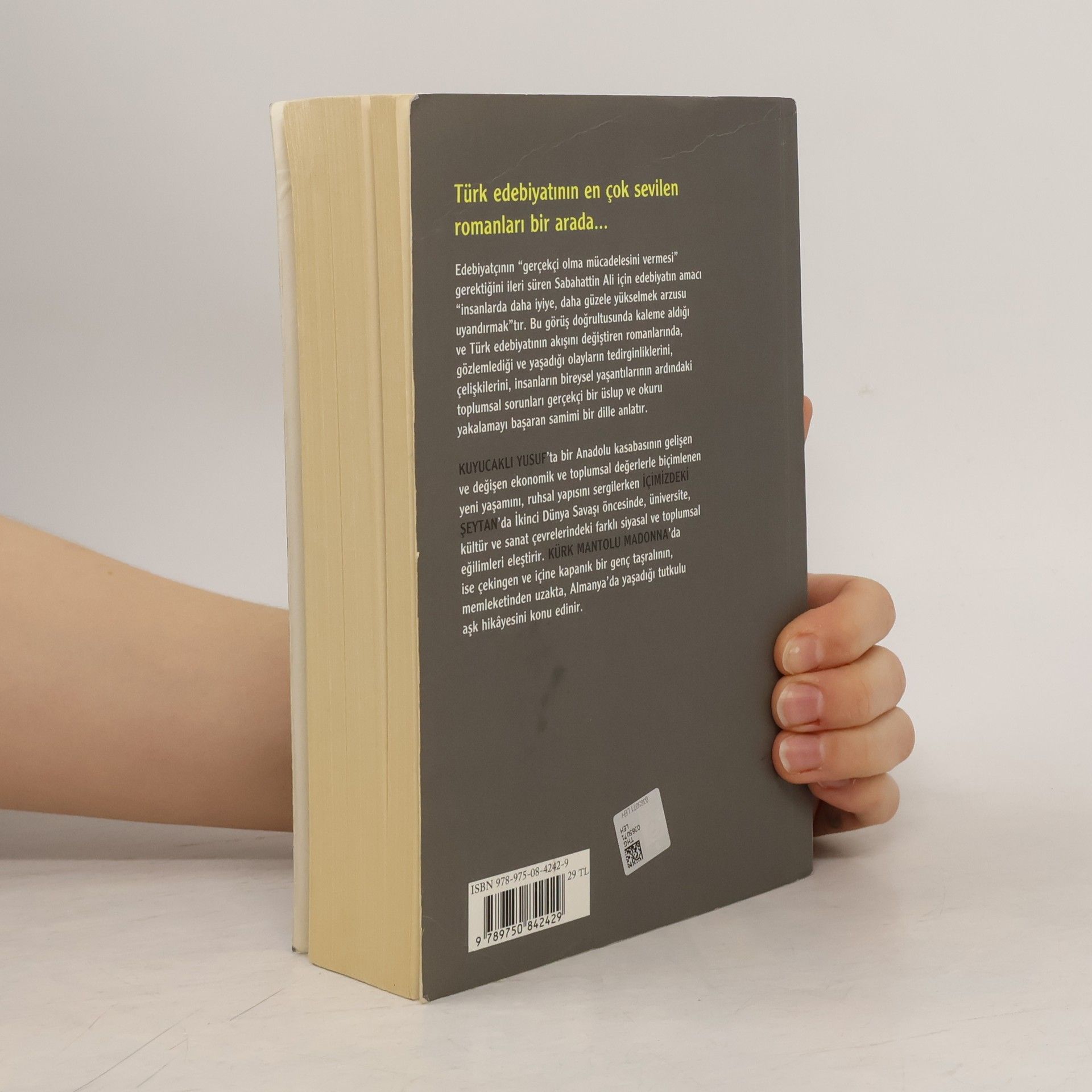 Edebiyatçının “gerçekçi olma mücadelesini vermesi” gerektiğini ileri süren Sabahattin Ali için edebiyatın amacı “insanlarda daha iyiye, daha güzele yükselmek arzusu uyandırmak”tır. Bu görüş doğrultusunda kaleme aldığı ve Türk edebiyatının akışını değiştiren romanlarında, gözlemlediği ve yaşadığı olayların tedirginliklerini, çelişkilerini, insanların bireysel yaşantılarının ardındaki toplumsal sorunları gerçekçi bir üslup ve okuru yakalamayı başaran samimi bir dille anlatır. Kuyucaklı Yusuf'ta bir Anadolu kasabasının gelişen ve değişen ekonomik ve toplumsal değerlerle biçimlenen yeni yaşamını, ruhsal yapısını sergilerken İçimizdeki Şeytan'da İkinci Dünya Savaşı öncesinde, üniversite, kültür ve sanat çevrelerindeki farklı siyasal ve toplumsal eğilimleri eleştirir. Kürk Mantolu Madonna'da ise çekingen ve içine kapanık bir genç taşralının, memleketinden uzakta, Almanya'da yaşadığı tutkulu aşk hikayesini konu edinir.