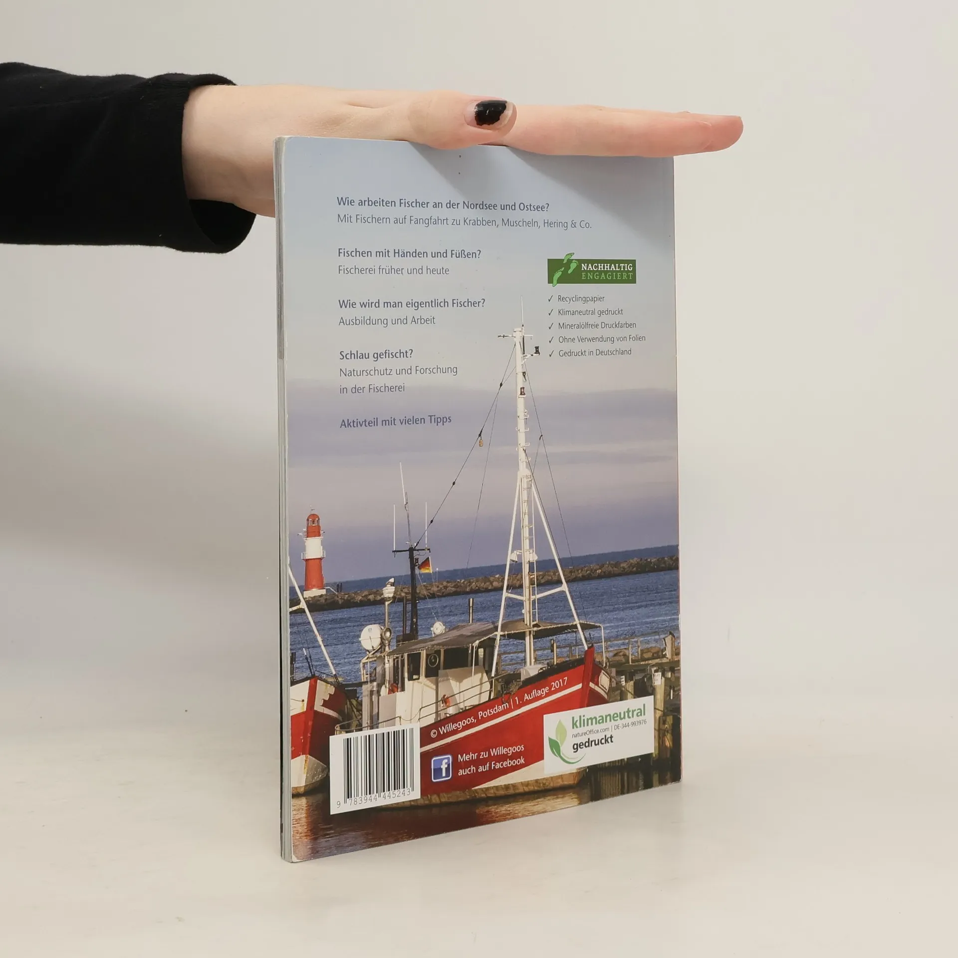 „Meere und Ozeane“ – In den bunten Reigen um das spannende Thema im Wissenschaftsjahr 2016/2017 reiht sich die neue Sachbuchreihe „Berufe rund ums Meer“ des Kinderbuchverlags Willegoos ein und beleuchtet im ersten Band den Beruf des Fischers. Autor Bernd-Uwe Janssen ist an der Nordsee und Ostsee mit Fischern auf Fangfahrt gegangen und erzählt lebendig mit vielen Bildern und informativen Grafiken von der Arbeit an Bord von Kuttern und Fabrikschiffen. Darüber hinaus beschreibt er anschaulich die spannende Entwicklung von der Strandfischerei bis zur modernen Hochseefischerei und zeigt, wie wichtig der Erhalt und Schutz des Lebensraums Meer ist, um eine wichtige Quelle unserer Nahrung auch in Zukunft zu erhalten. Ein Aktivteil mit vielen Tipps und Infos lädt zu eigenen Entdeckungen ein. Viele Fischer konnten sich früher kein Boot leisten und so wurde einfach am Strand mit Netzen, aber auch mit Händen und Füßen gefischt. „Butt pedden“ – also „Scholle treten“ – ging an der Nordsee zum Beispiel so: Barfuß im flachen Wasser herumlaufen, und wenn etwas unter dem Fuß zappelt, den Fuß nicht wegziehen. Diese und andere Methoden werden im ersten Kapitel „Fischerei – früher und heute“ mit vielen historischen Fotos spannend beleuchtet. In weiteren Kapiteln beschreibt Bernd-Uwe Janssen anschaulich seine Fangfahrten mit Fischern an der Nordsee und Ostsee. Im Kapitel „Fischer – ein Beruf mit Zukunft“ wird neben der Ausbildung auch verständlich und kindgerecht die Bedeutung nachhaltiger Fischerei für die Zukunft unserer Meere erläutert. Ein Aktivteil mit Tipps zu Fangfahrten, zum aktiven Müllvermeiden und zu wichtigen Kriterien, die beim Fischkauf beachtet werden sollten, rundet das Sachbuch für neugierige Küsten- und Ferienkinder ab.