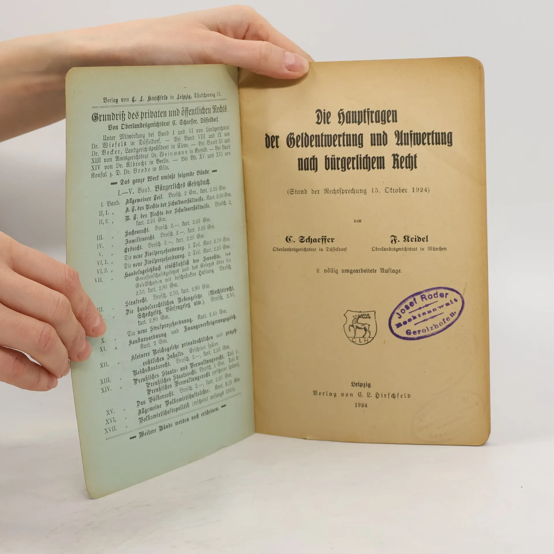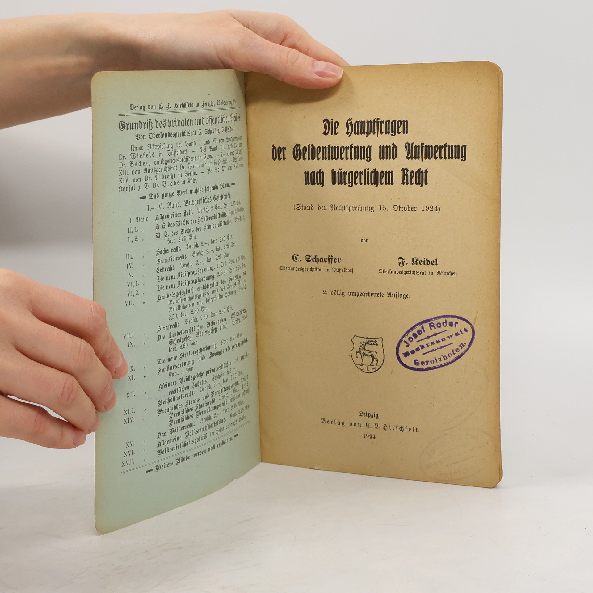 Die Hauptfragen der Geldentwertung und Aufwertung nach bürgerlichem Recht, Fritz Keidel, Carl Schaeffer
