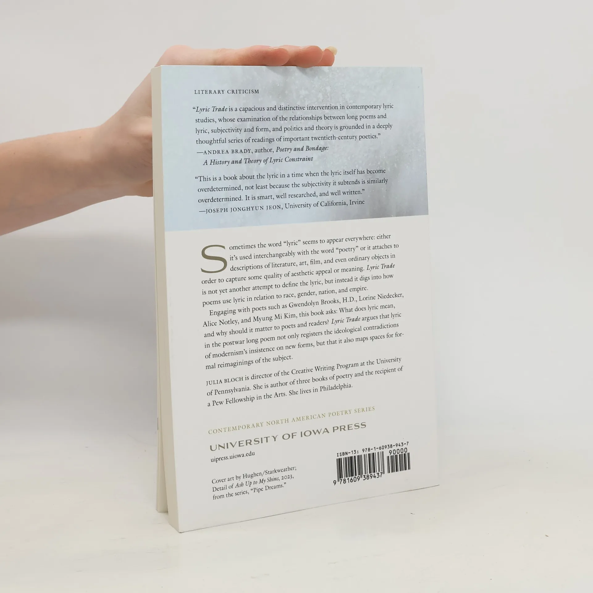 Sometimes the word “lyric” seems to appear either it’s used interchangeably with the word “poetry” or it attaches to descriptions of literature, art, film, and even ordinary objects in order to capture some quality of aesthetic appeal or meaning. Lyric Trade is not yet another attempt to define the lyric, but instead it digs into how poems use lyric in relation to race, gender, nation, and empire.Engaging with poets such as Gwendolyn Brooks, H.D., Lorine Niedecker, Alice Notley, and Myung Mi Kim, this book What does lyric mean, and why should it matter to poets and readers? Lyric Trade argues that lyric in the postwar long poem not only registers the ideological contradictions of modernism’s insistence on new forms, but that it also maps spaces for formal reimaginings of the subject.