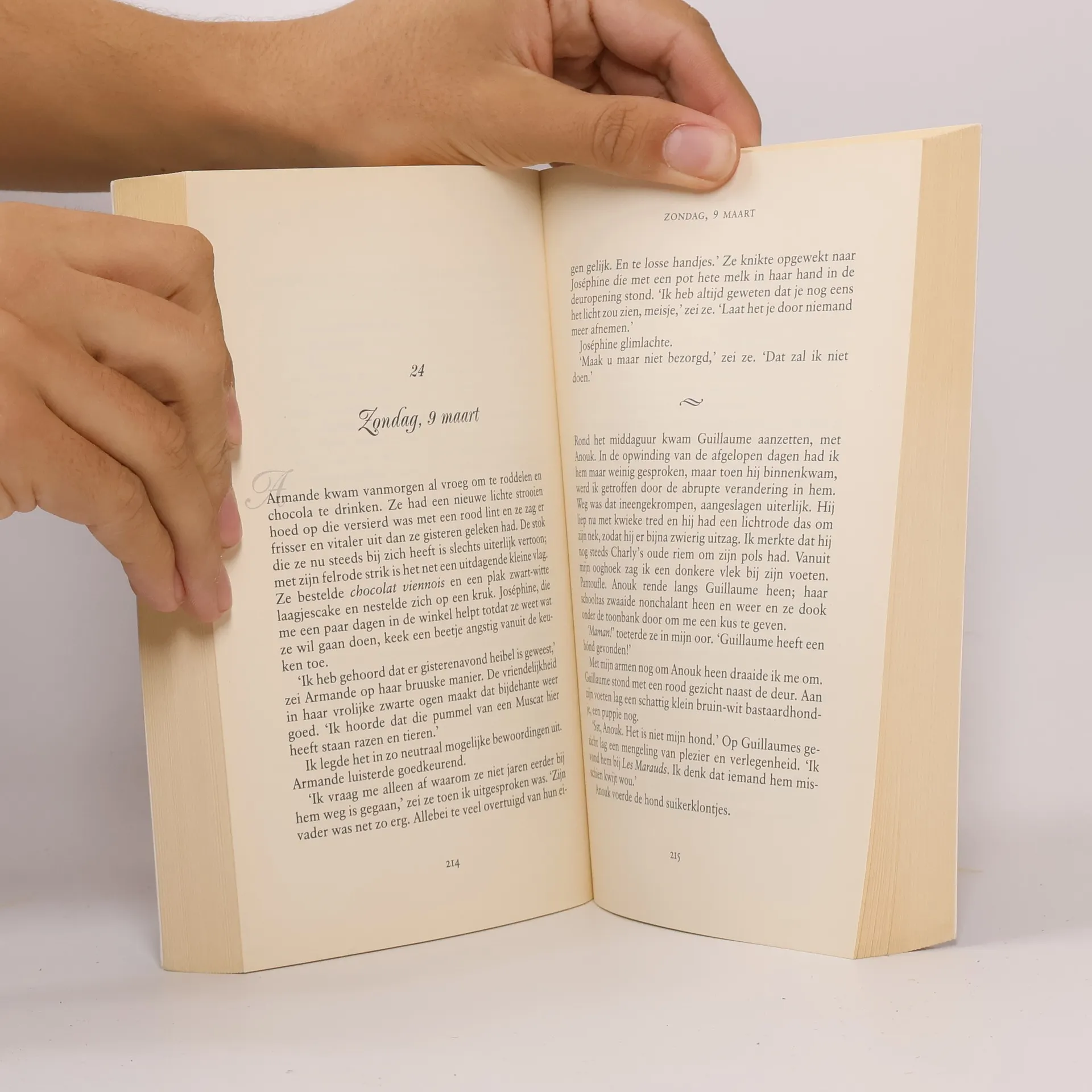 Wanneer Vianne Rocher met haar zesjarige dochtertje Anouk in Lansquenet-sous-Tannes neerstrijkt, lijken magische krachten in het kleine Zuid-Franse dorp tot leven te komen. Op Aswoensdag opent ze, pal tegenover de kerk, haar chocolaterie - tot woede en afkeuring van de starre dorpspastoor Francis Reynaud. Met lede ogen moet hij toezien hoe Vianne uitgerekend in de vastentijd zijn parochianen verleidt met haar onweerstaanbare chocoladecreaties en haar warme persoonlijkheid. Door haar uitzonderlijke vermogen de persoonlijke smaken en behoeften van haar klanten te kennen, sluit Vianne al snel vriendschap met de eenzame Guillaume, de tachtigjarige eigenzinnige Armande Voizin, kleptomane ]osephine Muscat en met de woonbootbewoners die zijn afgemeerd aan de oever van de Tannes. Wanneer Vianne aankondigt met Pasen een chocoladefestival te organiseren, raakt pere Reynaud buiten zichzelf en stevent de strijd tussen de tegengestelde krachten die het dorp in hun greep houden onomkeerbaar op een dramatisch hoogtepunt af.